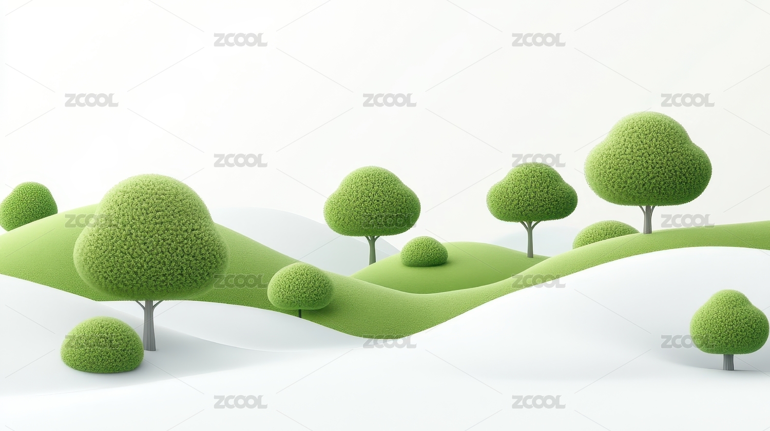 可爱卡通风格绿色丘陵