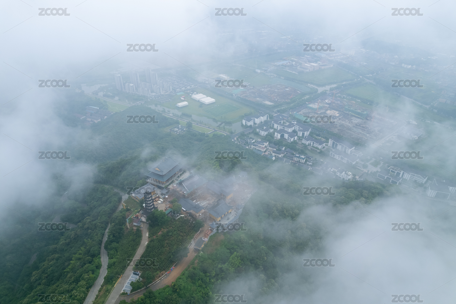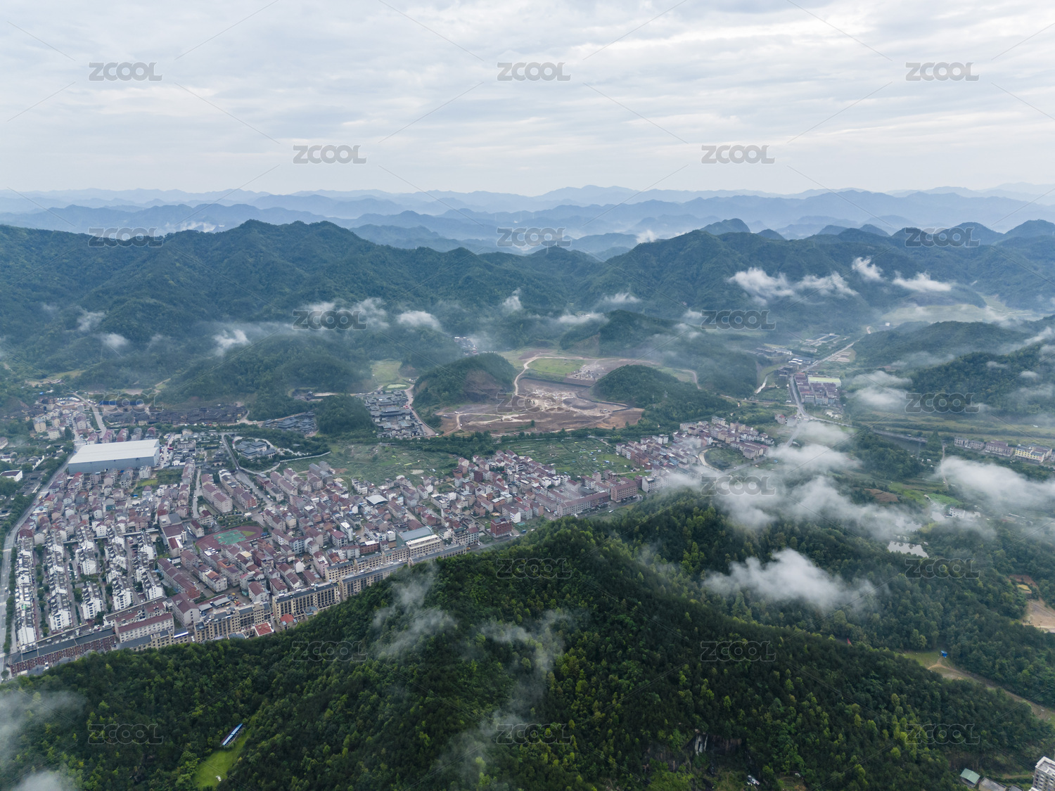 浙江省湖州市莫干山云雾缭绕山间村落航拍
