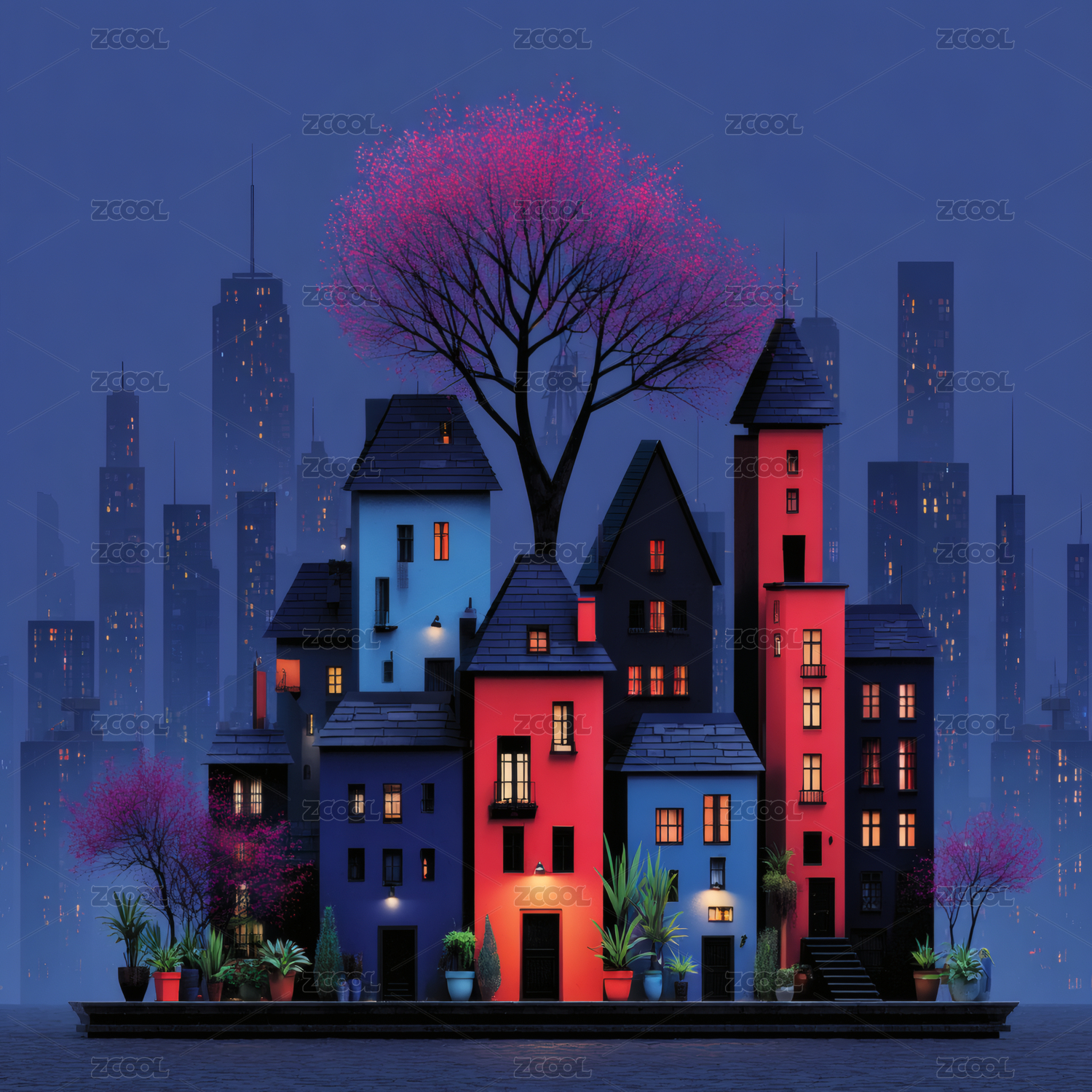 绚丽,彩色,色彩,房屋,建筑,楼房,卡通,3D,立体,城市