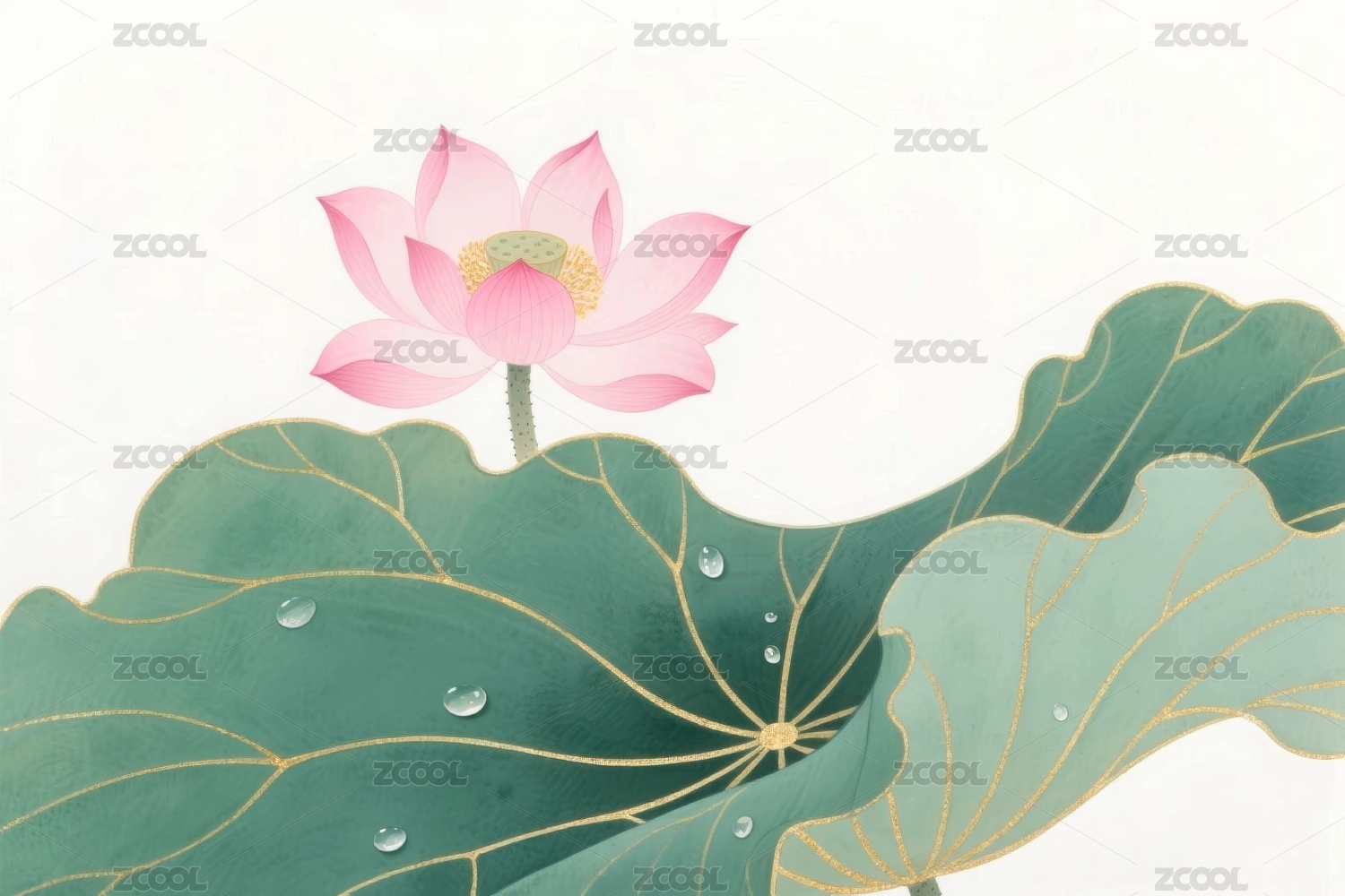 主视觉,金箔,荷花,国潮,装饰,场景,水墨,风格,中式,艺术