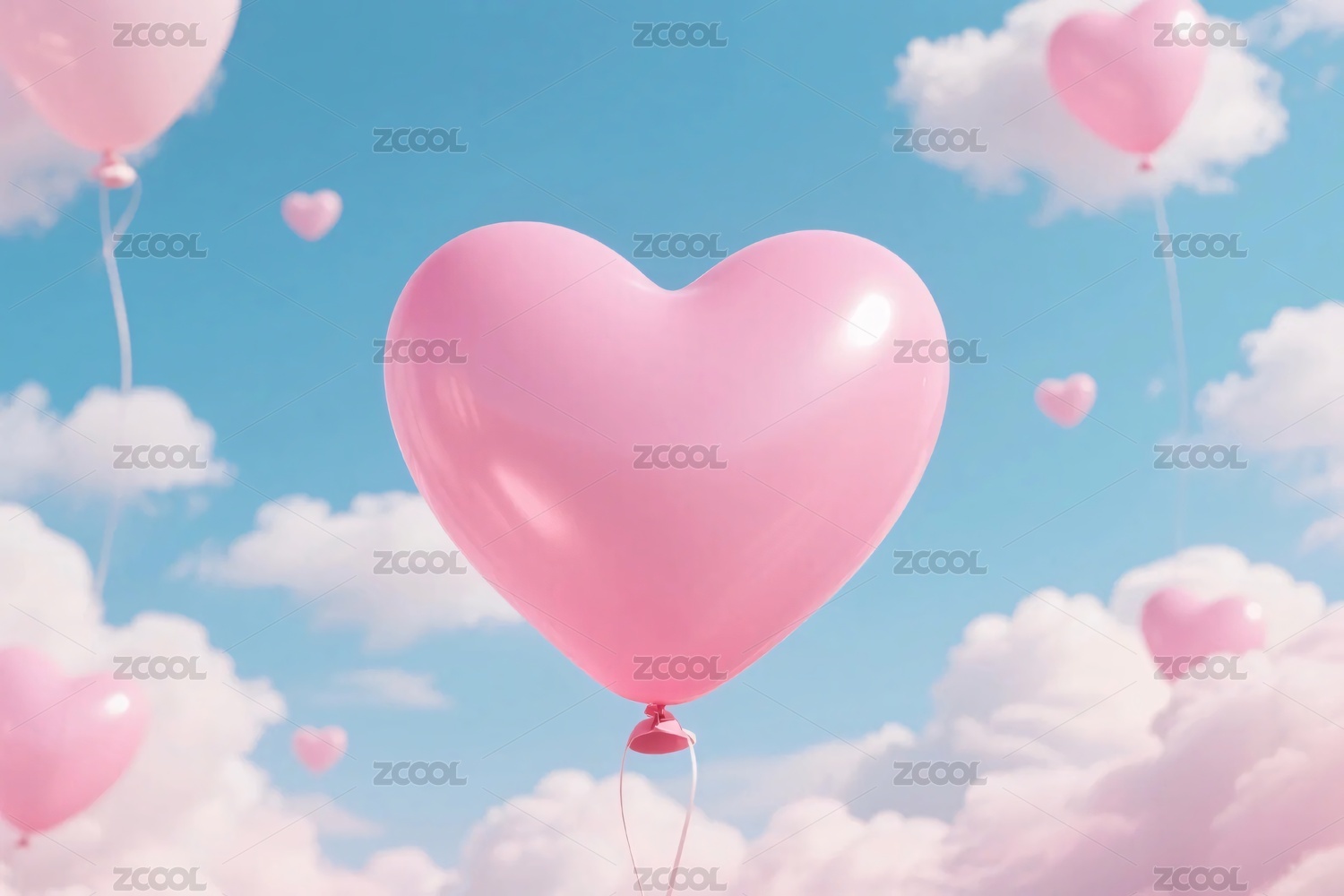 主视觉,爱心,元素,粉色,色系,浪漫,天空,场景,云朵,漂浮