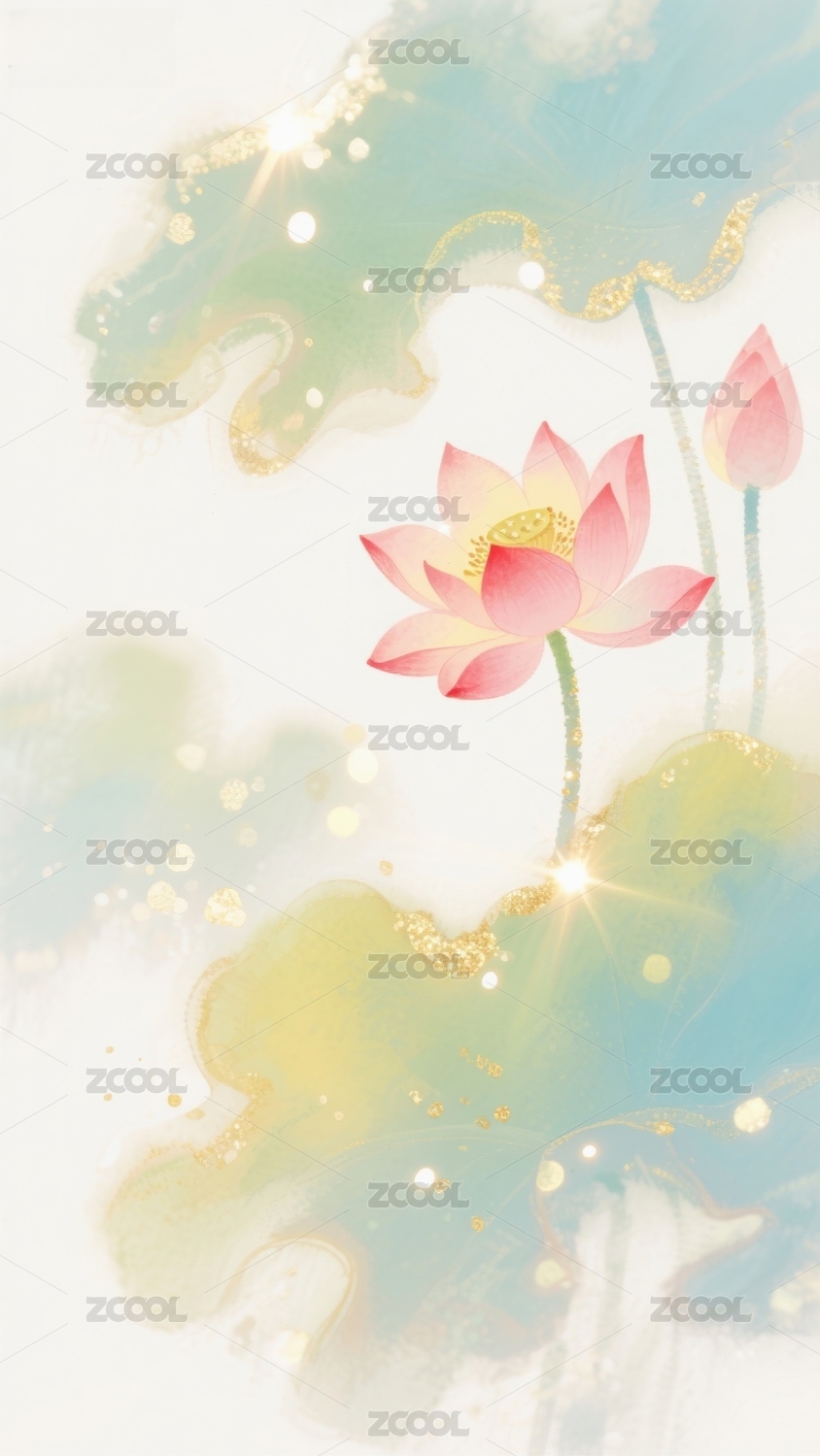 主视觉,金箔,荷花,国潮,装饰,场景,水墨,风格,中式,艺术