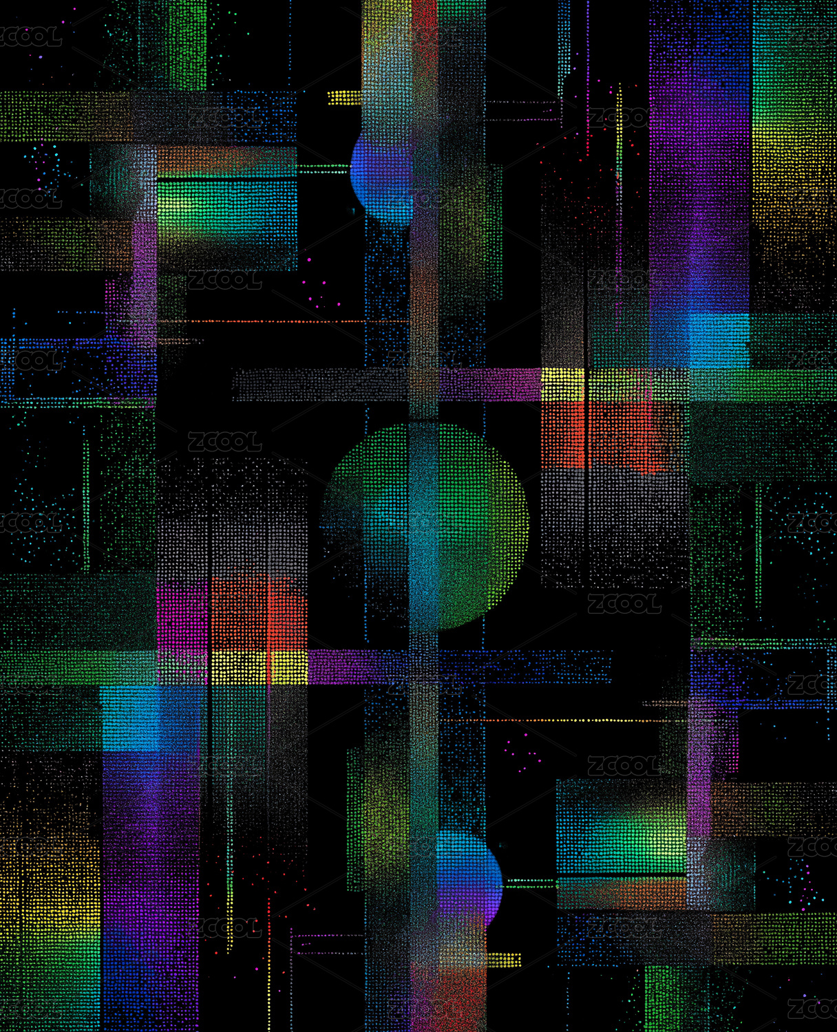 黑色背景上彩色线条与圆形构成抽象艺术图案