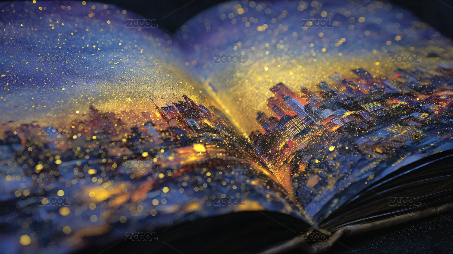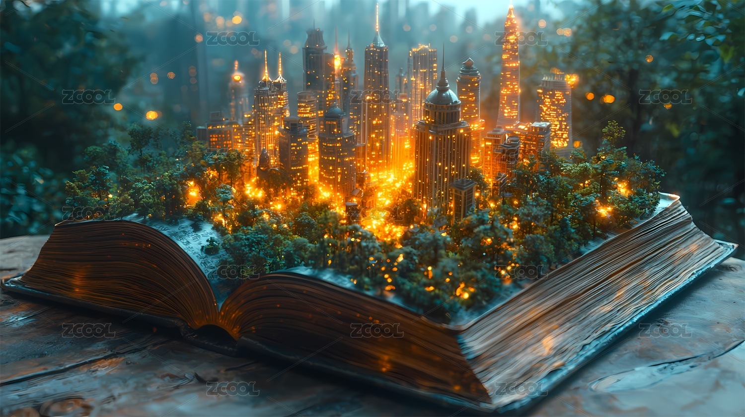 魔法书和城市夜景
