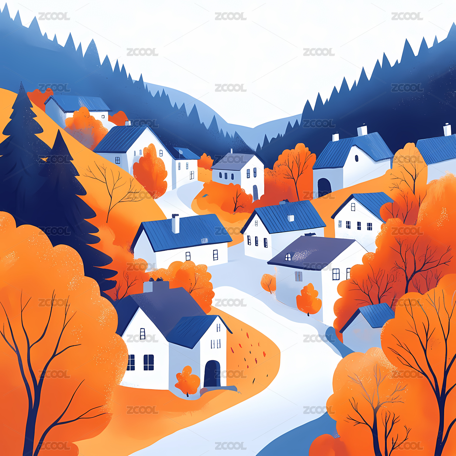 设计,艺术,旅游,自然,插画,宁静,美丽,风景,树木,色彩