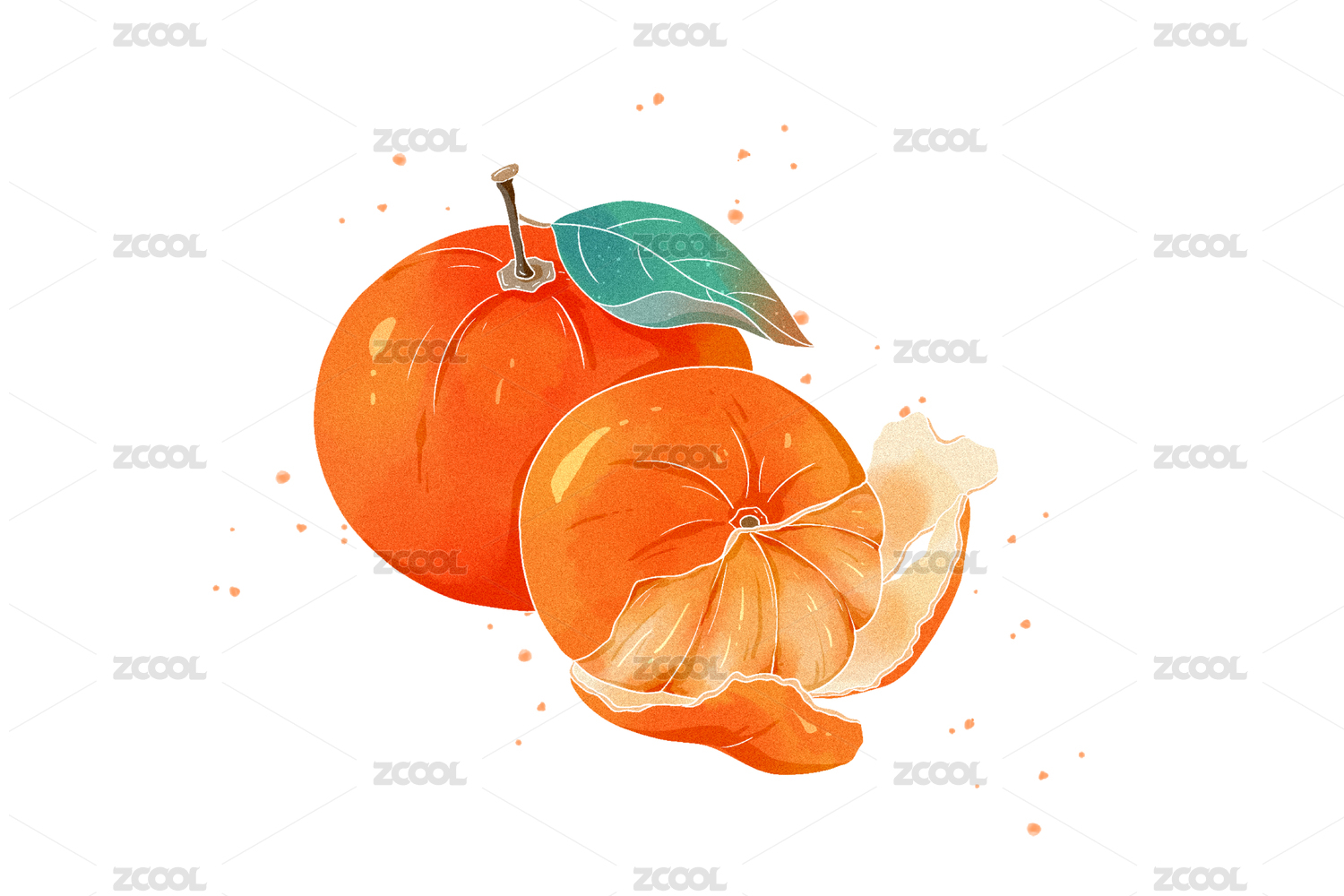 中国风手绘水果橘子