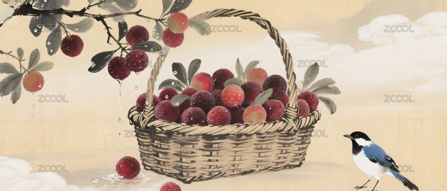 工笔画,杨梅,水果,植物,酸甜,解暑,夏天,维生素,杨梅汤,饮料