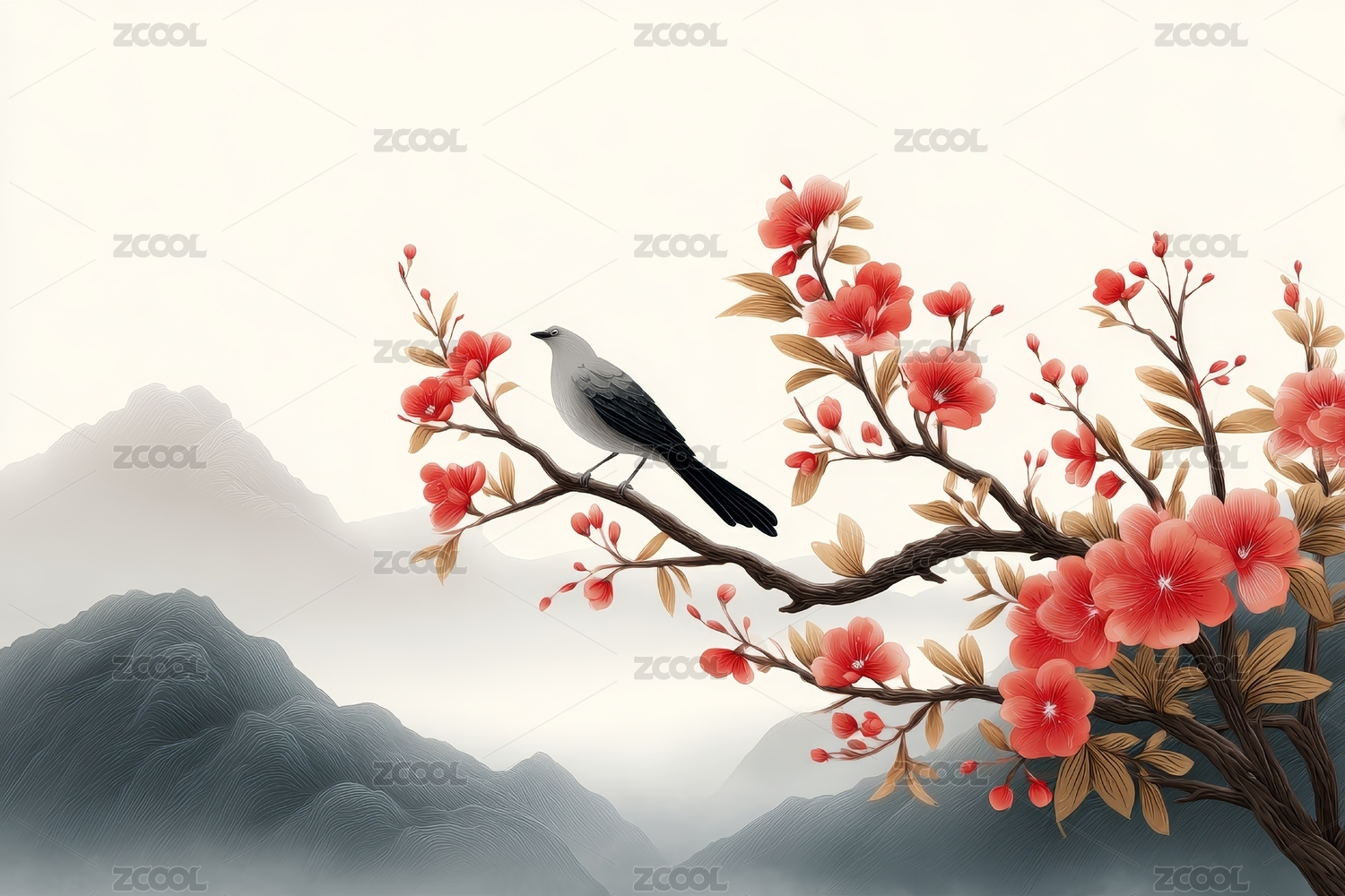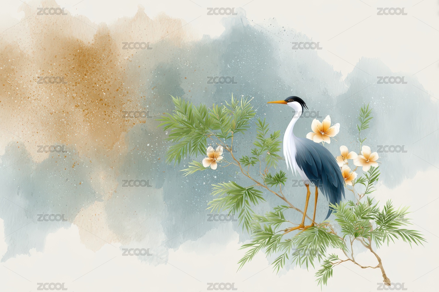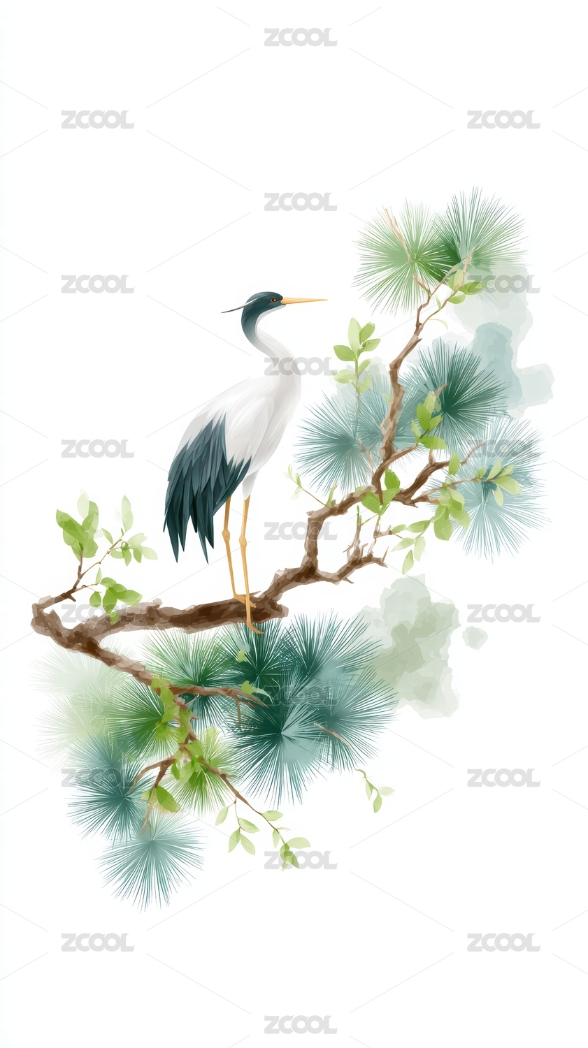 艺术,优雅,绿叶,自然,细节,白鹭,松枝,栖息