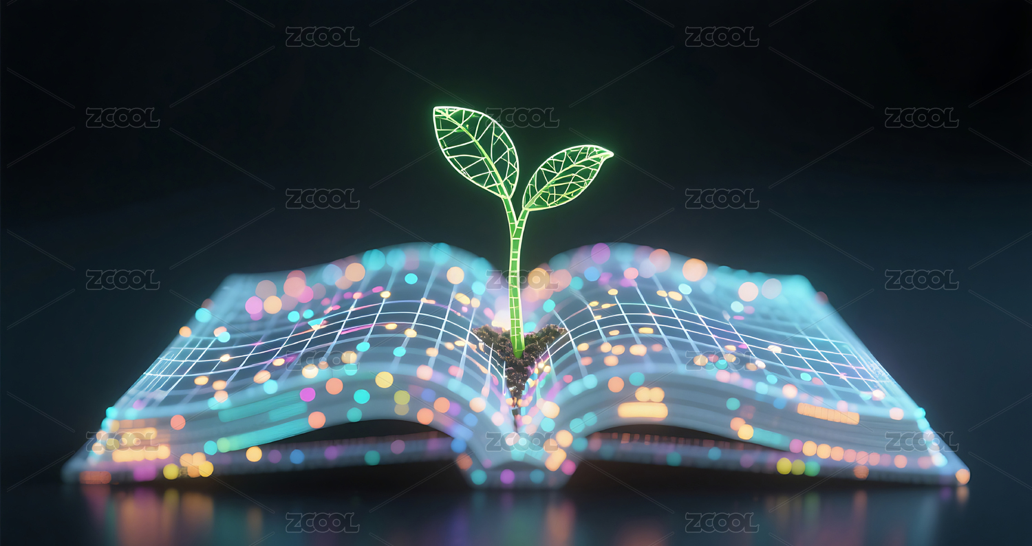 光点线面组成书本里发芽的植物