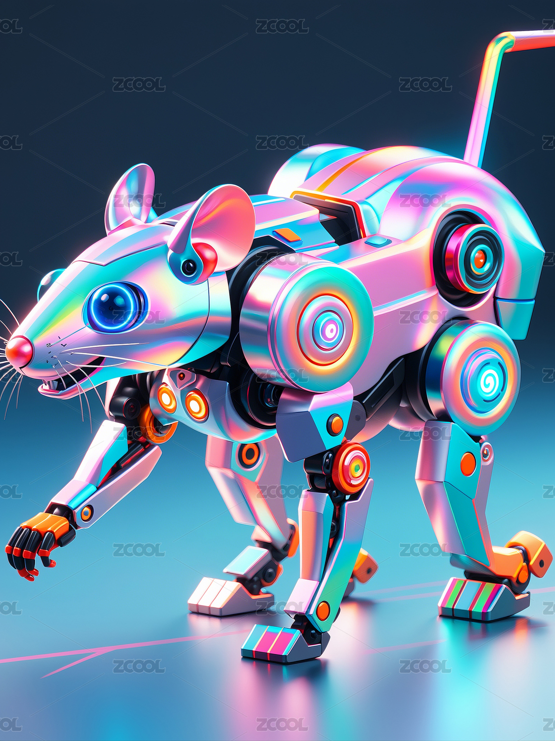 一只可爱的电子机器猫三维渲染
