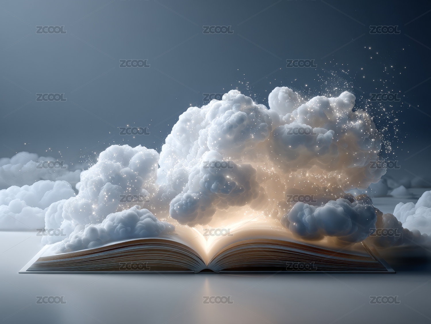 梦幻,云朵,光芒,月亮,书页,星星,树苗,烛台