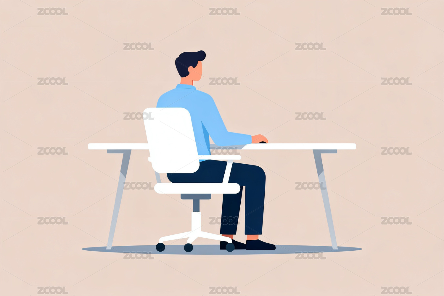 白色,蓝色,办公,电脑,书桌,座椅,男性,室内