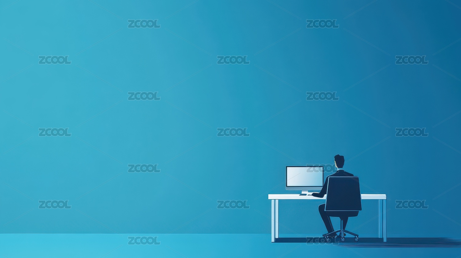 光影,背景,蓝色,人物,电脑,工作,杯子,座椅,桌子