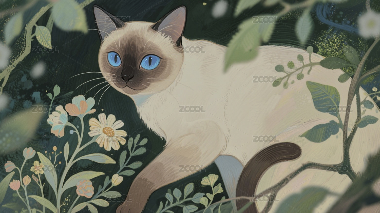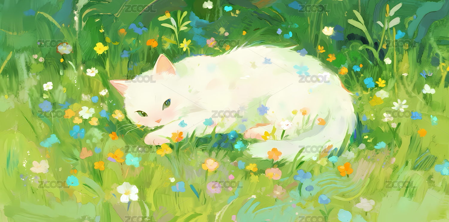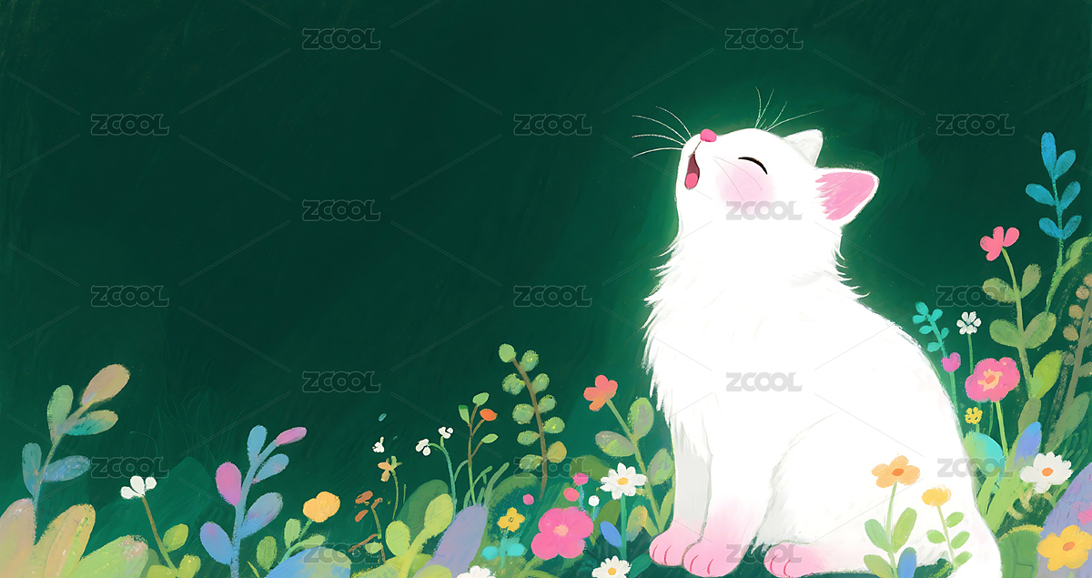 背景,壁纸,插画,卡通,植物,花,草,猫,动物