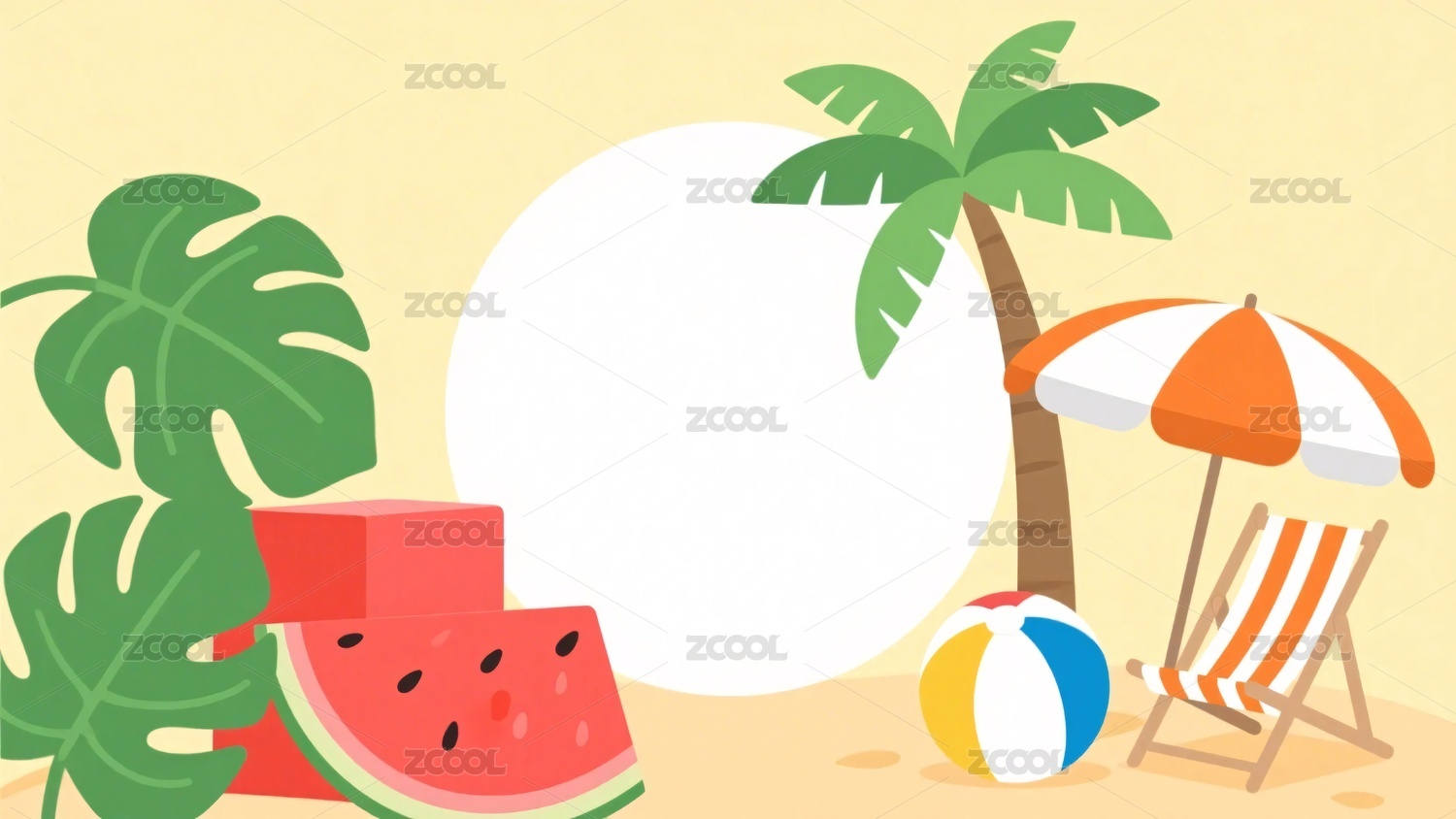 海滩,椰树,躺椅,西瓜,冰淇淋,太阳镜,沙滩,凉爽