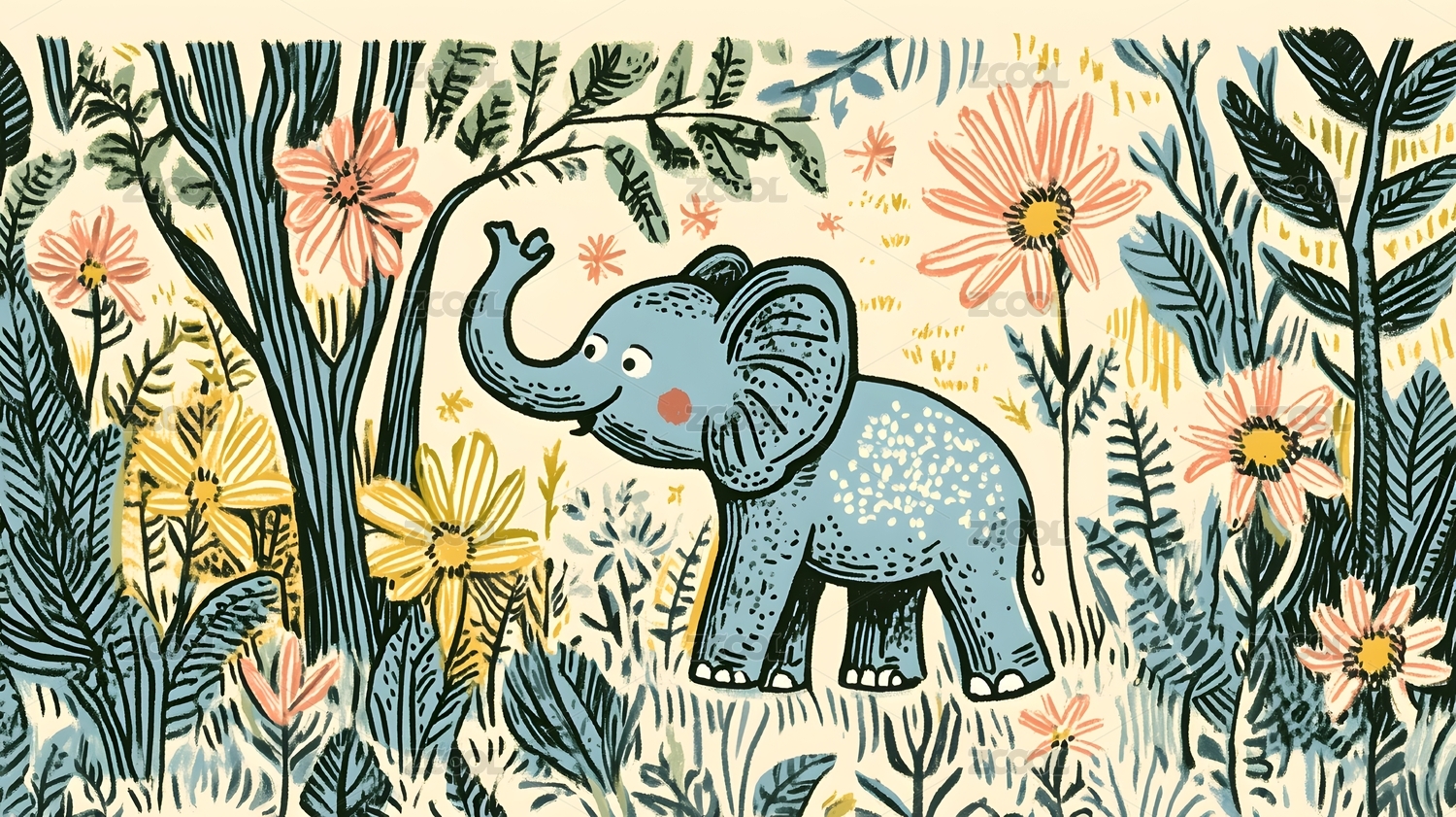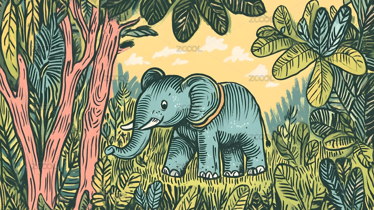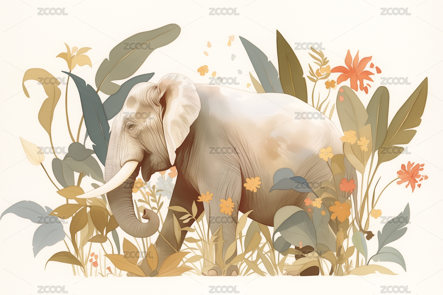 插画,背景壁纸,植物,时尚,复古,艺术,大象