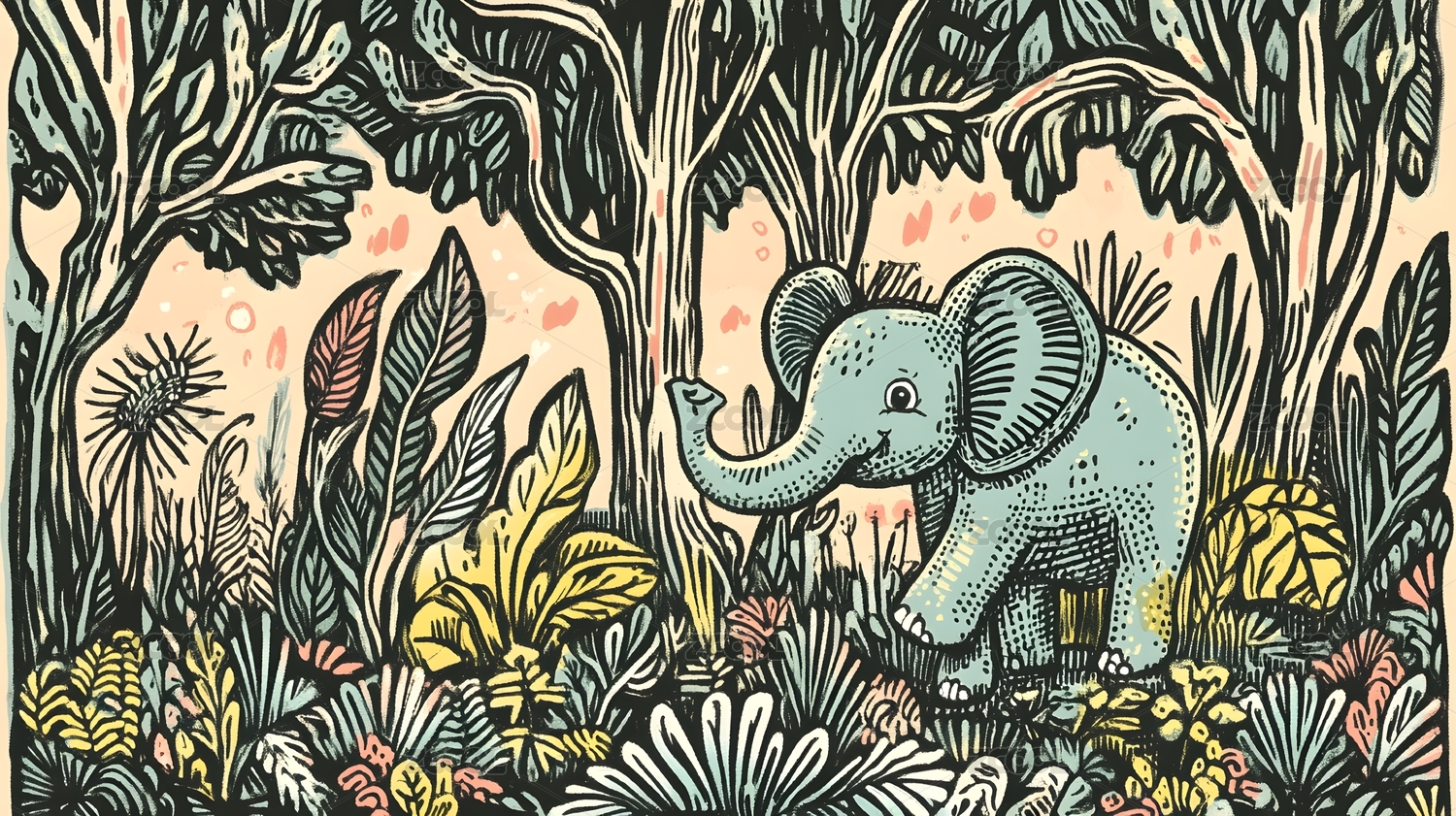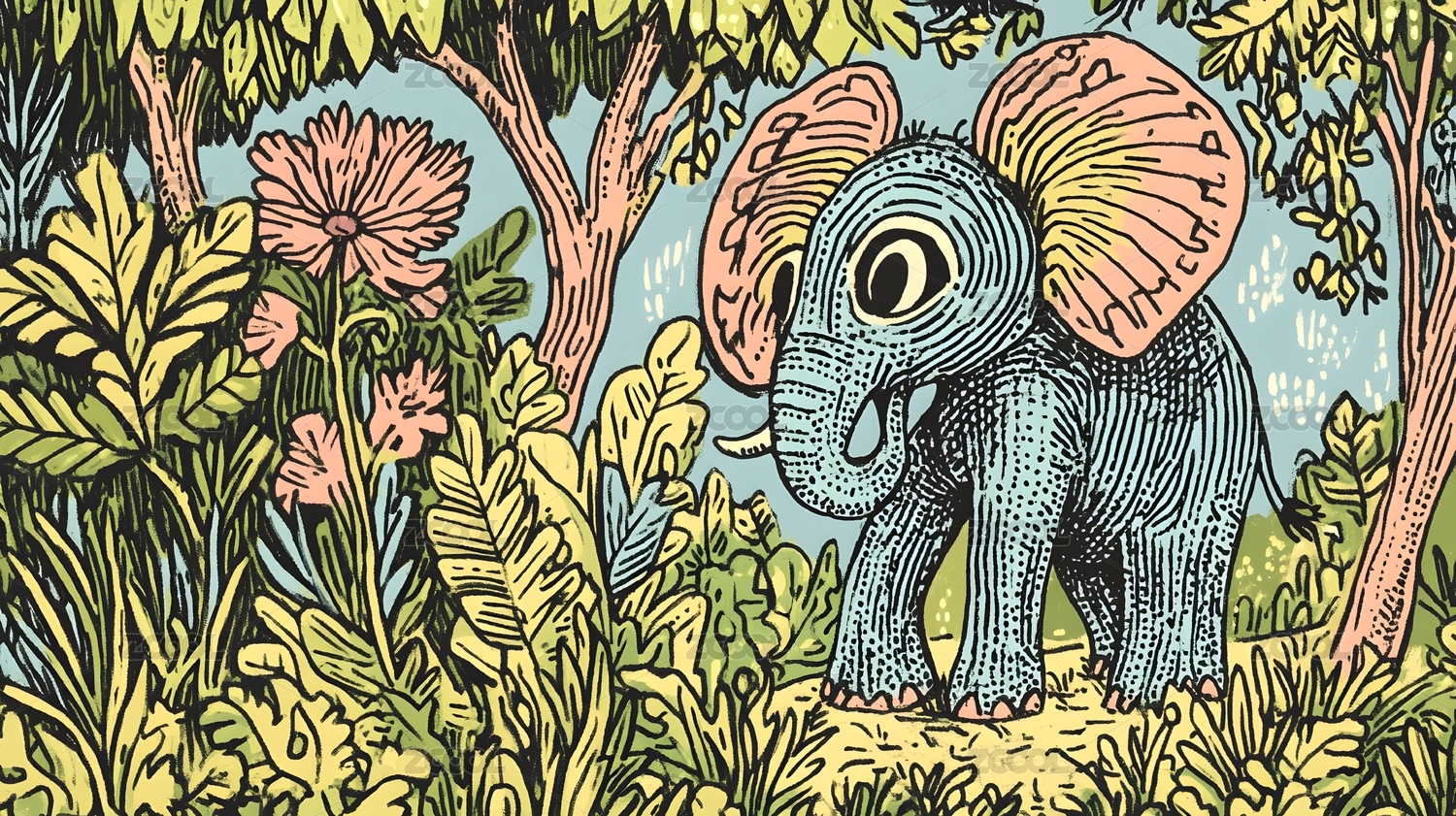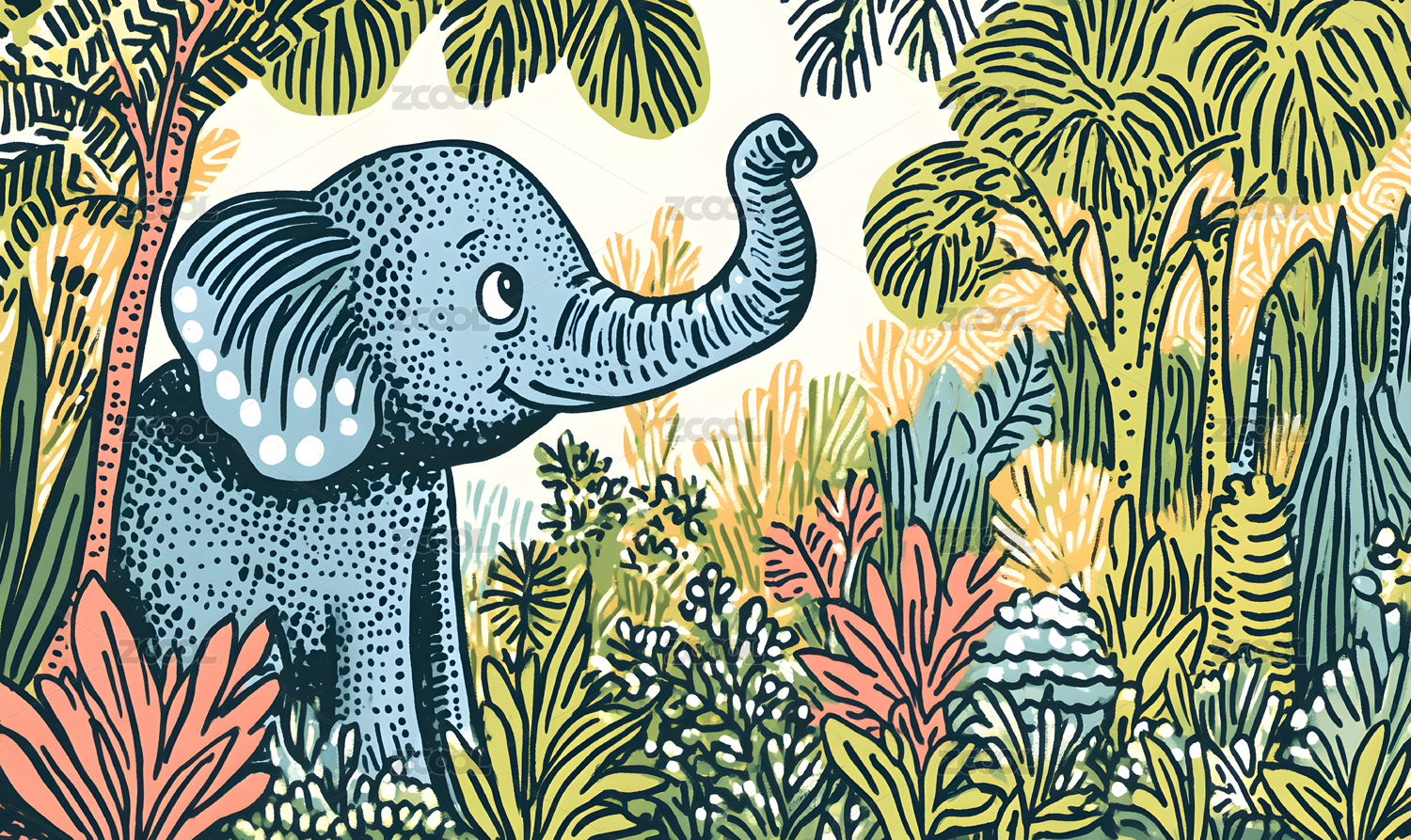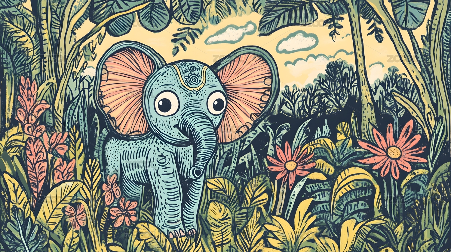 插画,背景壁纸,植物,时尚,复古,艺术,大象