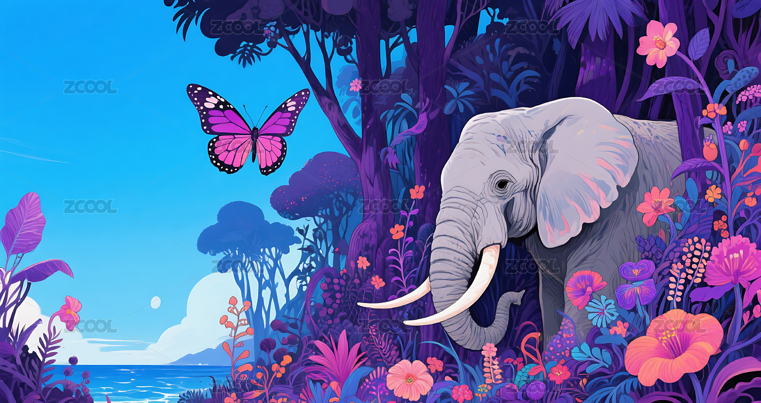 插画,背景壁纸,植物,时尚,复古,艺术,黑豹