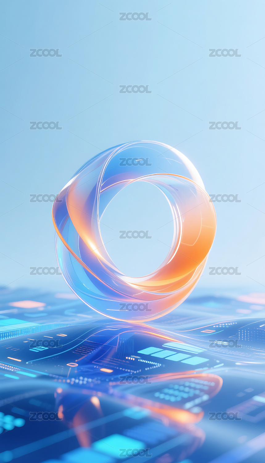 抽象蓝橙玻璃三维环形电商科技背景