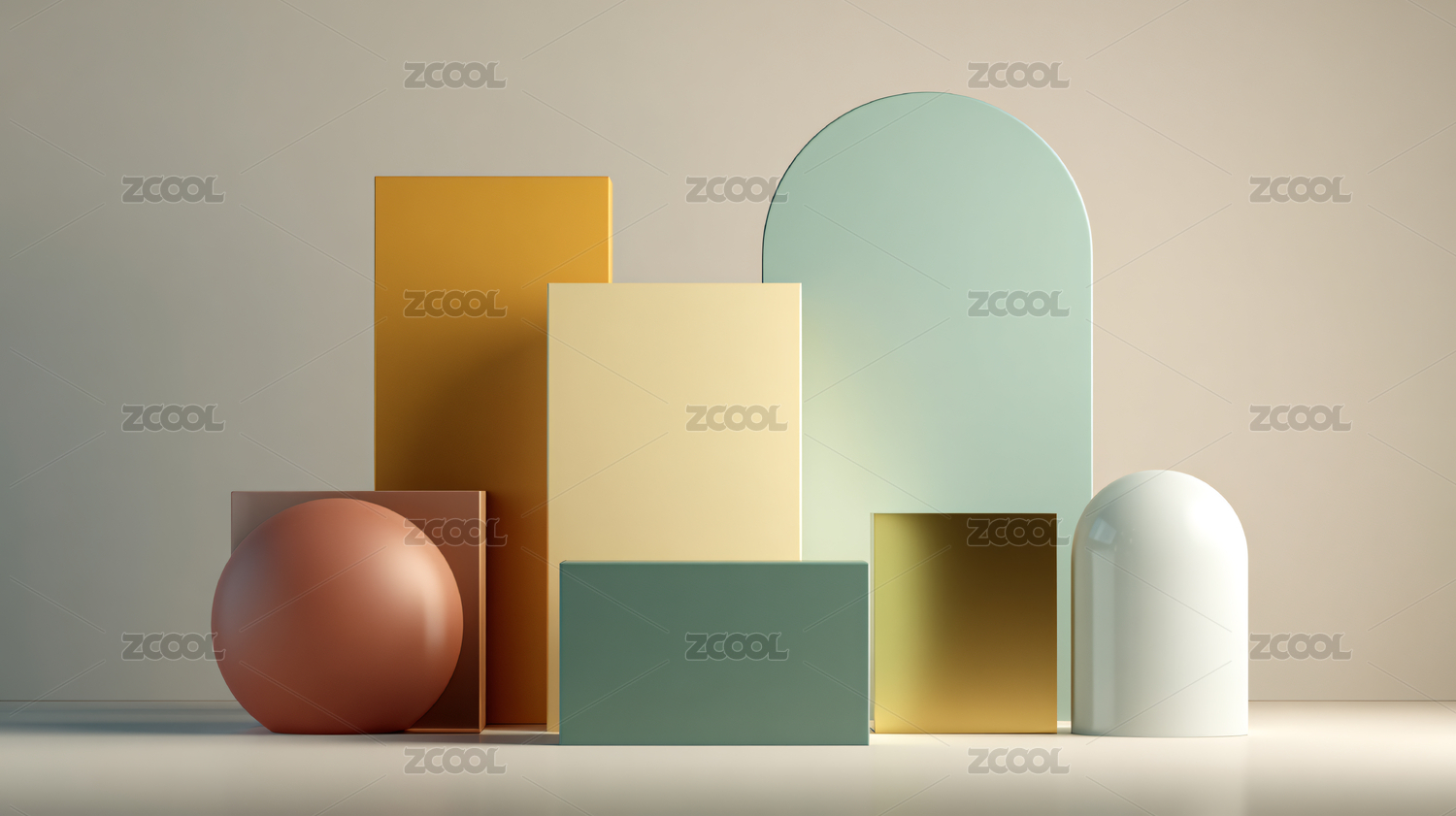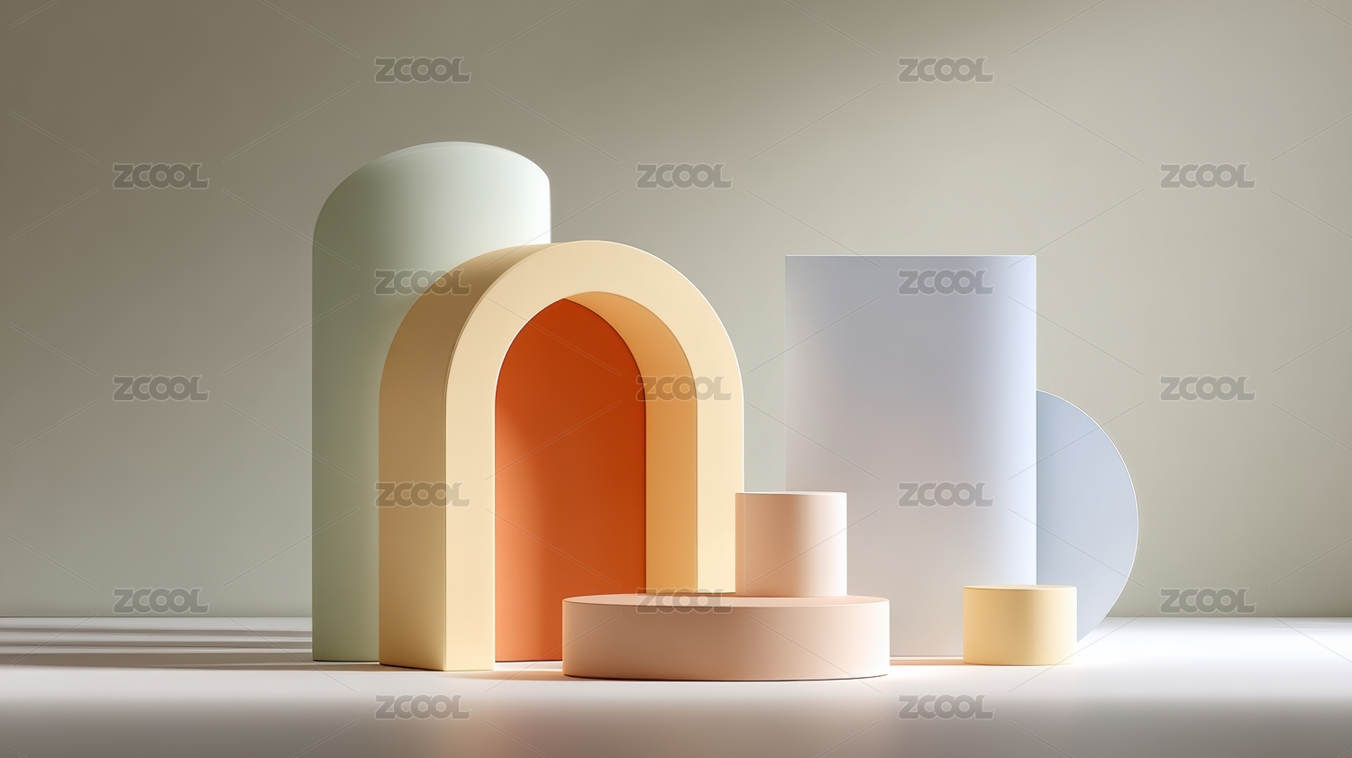 简约几何造型的柔和色调展示台