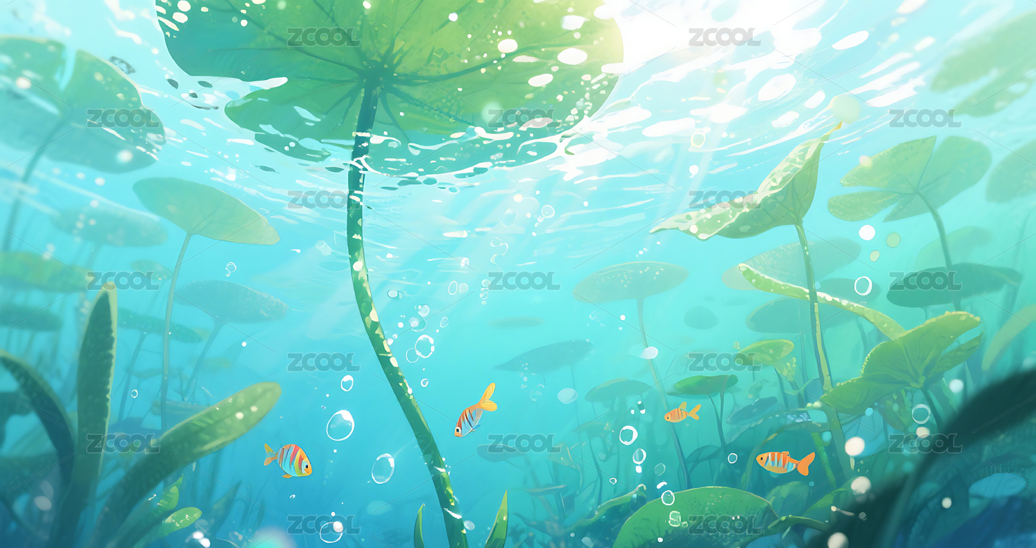 水底,荷叶,植物,夏天,插画,水彩,背景,壁纸
