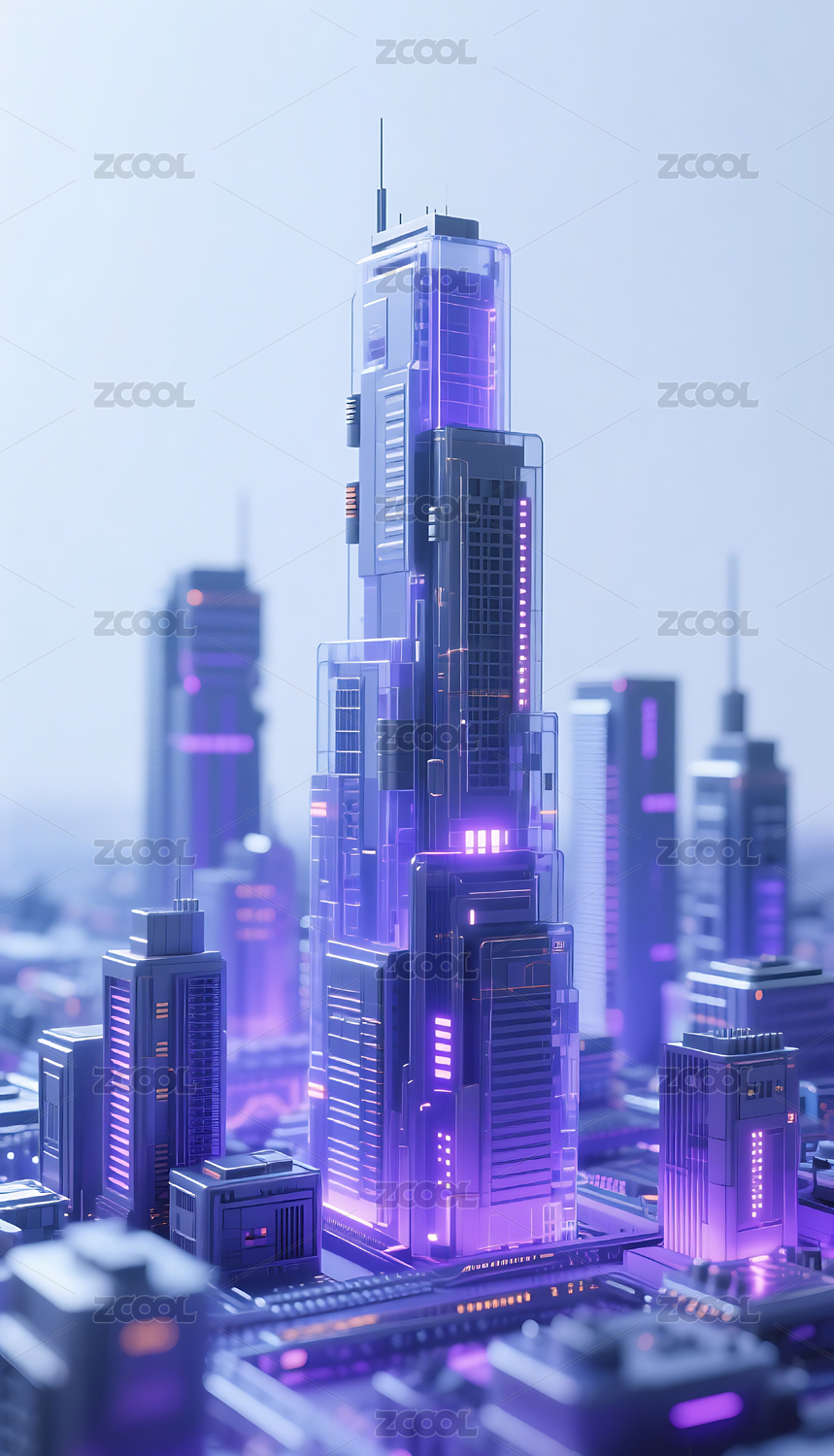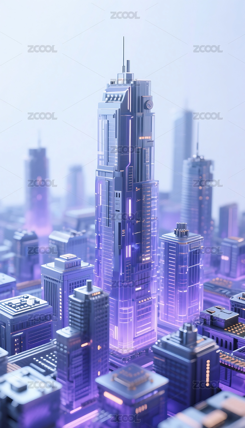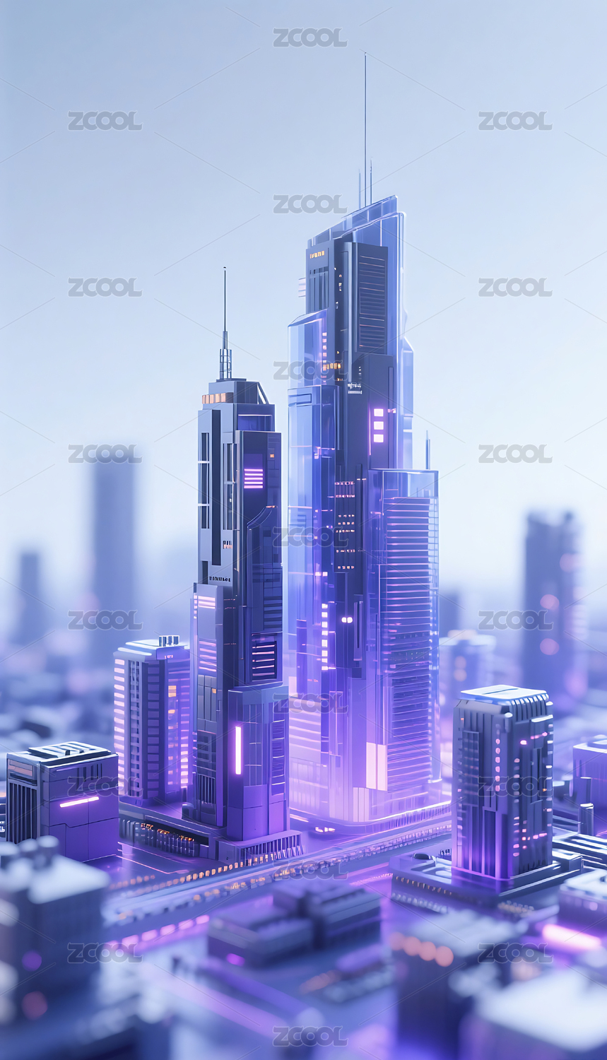 清新淡雅现代城市模型沙盘3D卡通立体插画