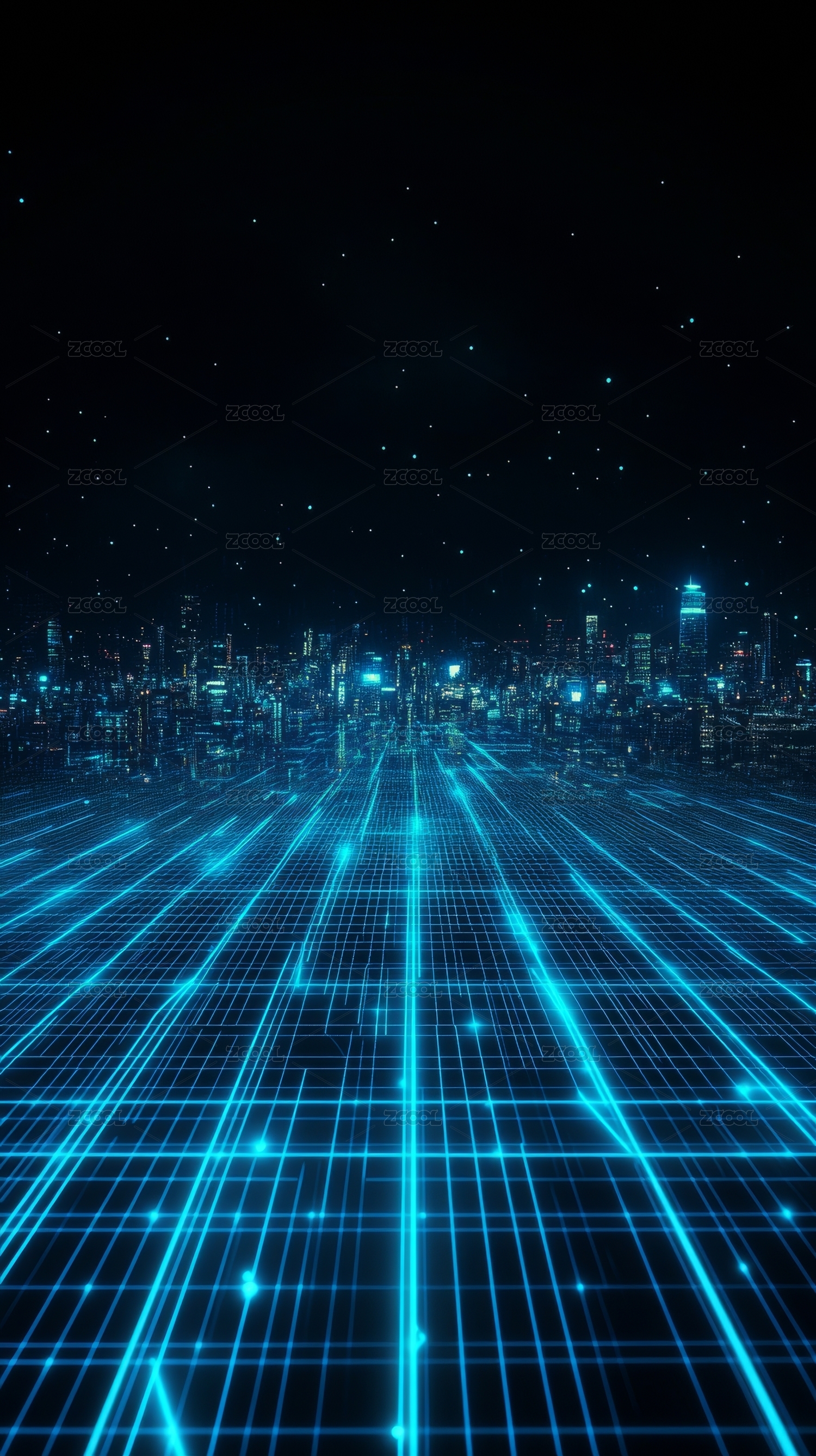 蓝色,科技感,城市,夜景,作品,数字,艺术,摄影,未来,概念