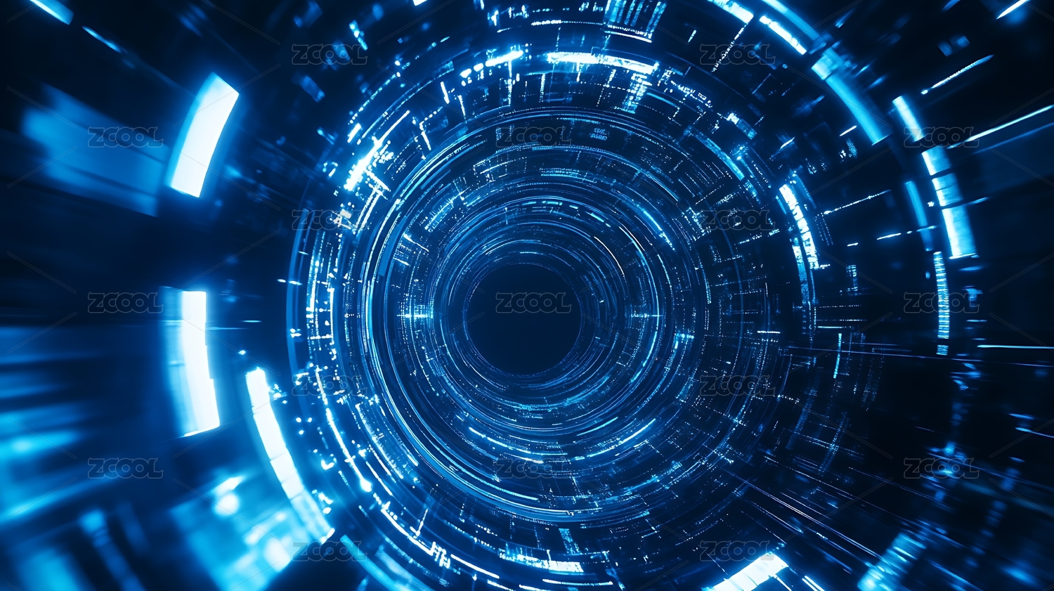 科技,圆形,蓝色,光环,线条,抽象,纹理,迷幻