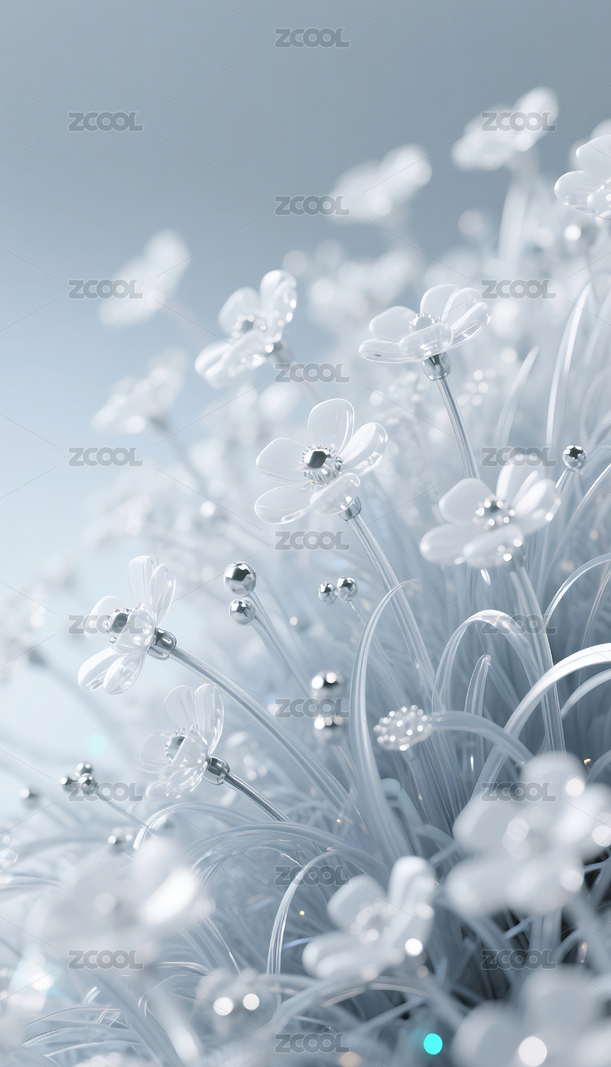 精密元件组成的白色透明花