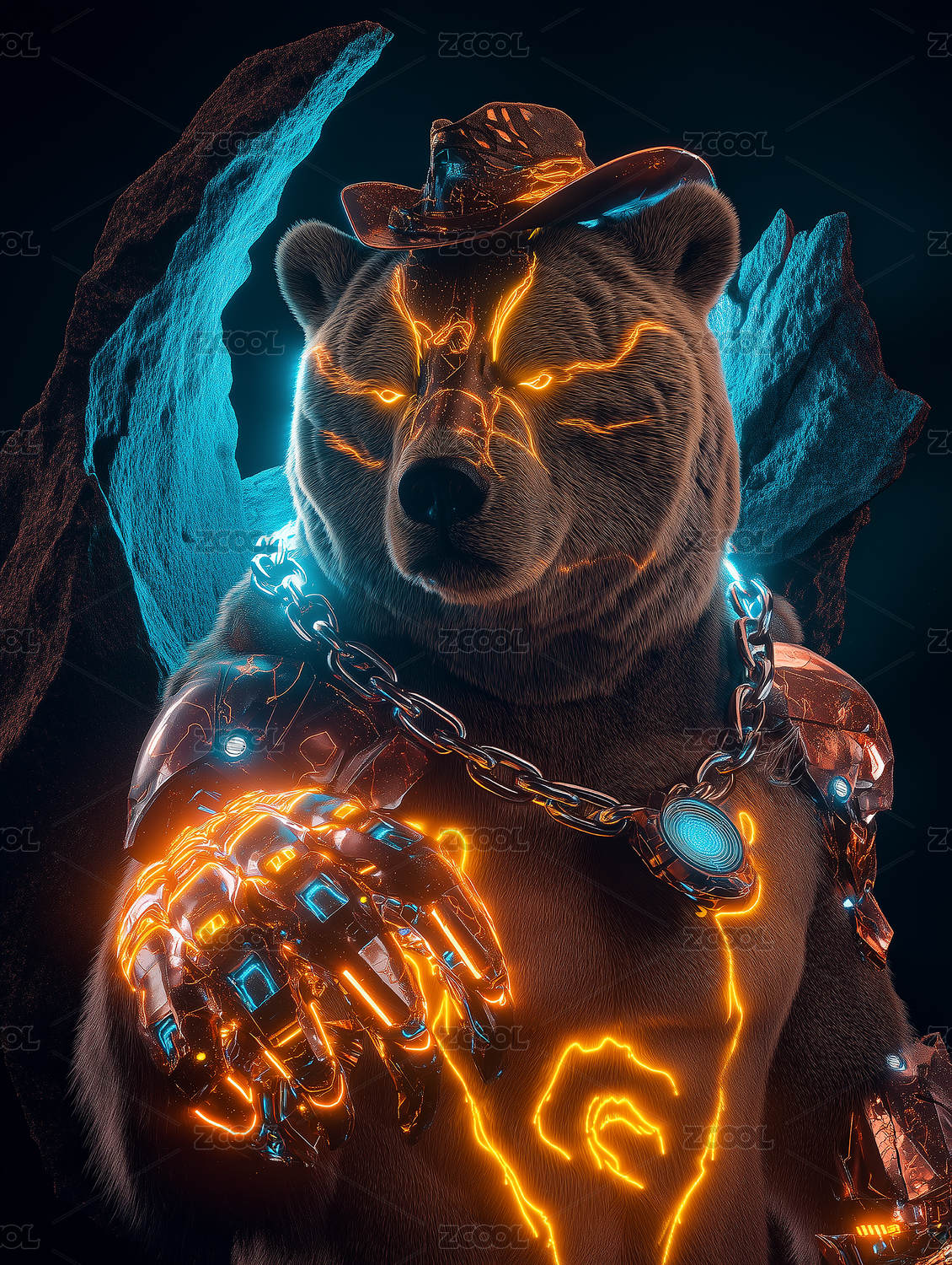 赛博朋克动物狗熊发光未来科技科幻虚构