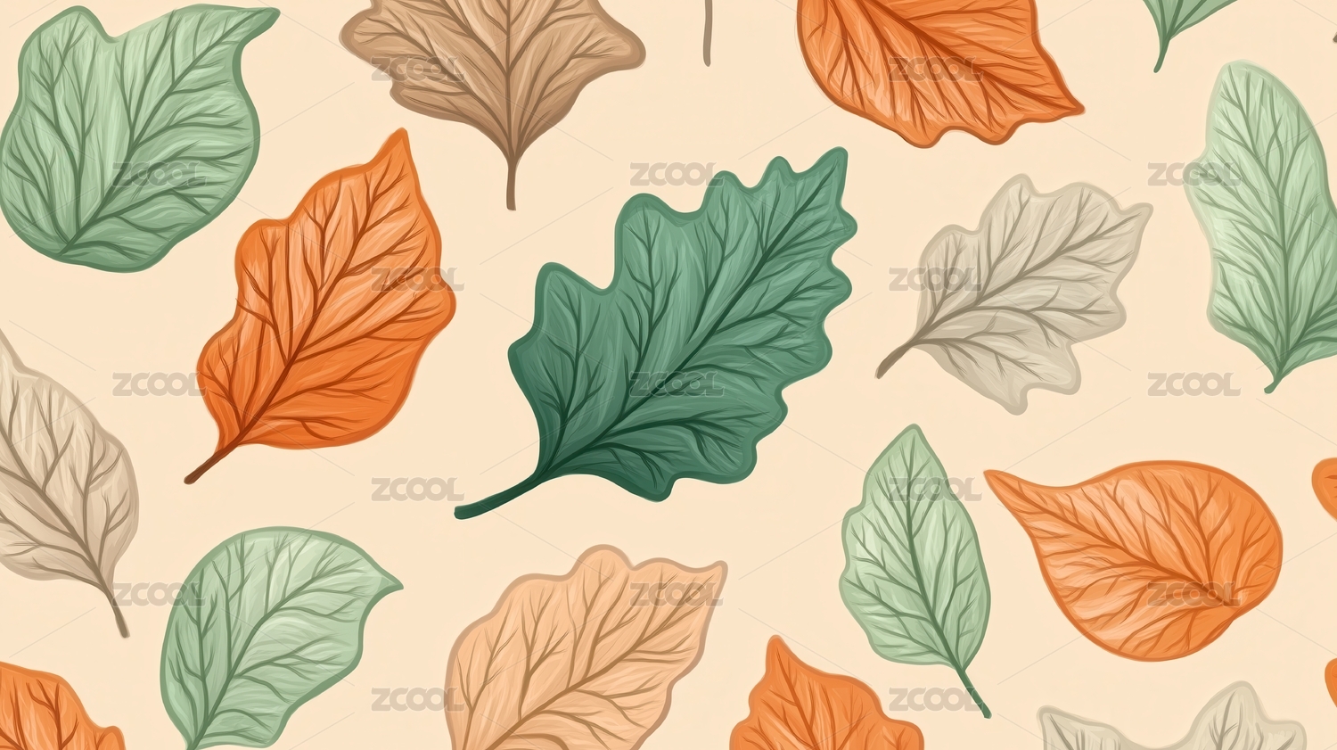 平铺彩色叶子红叶四方连续无缝循环扁平插画