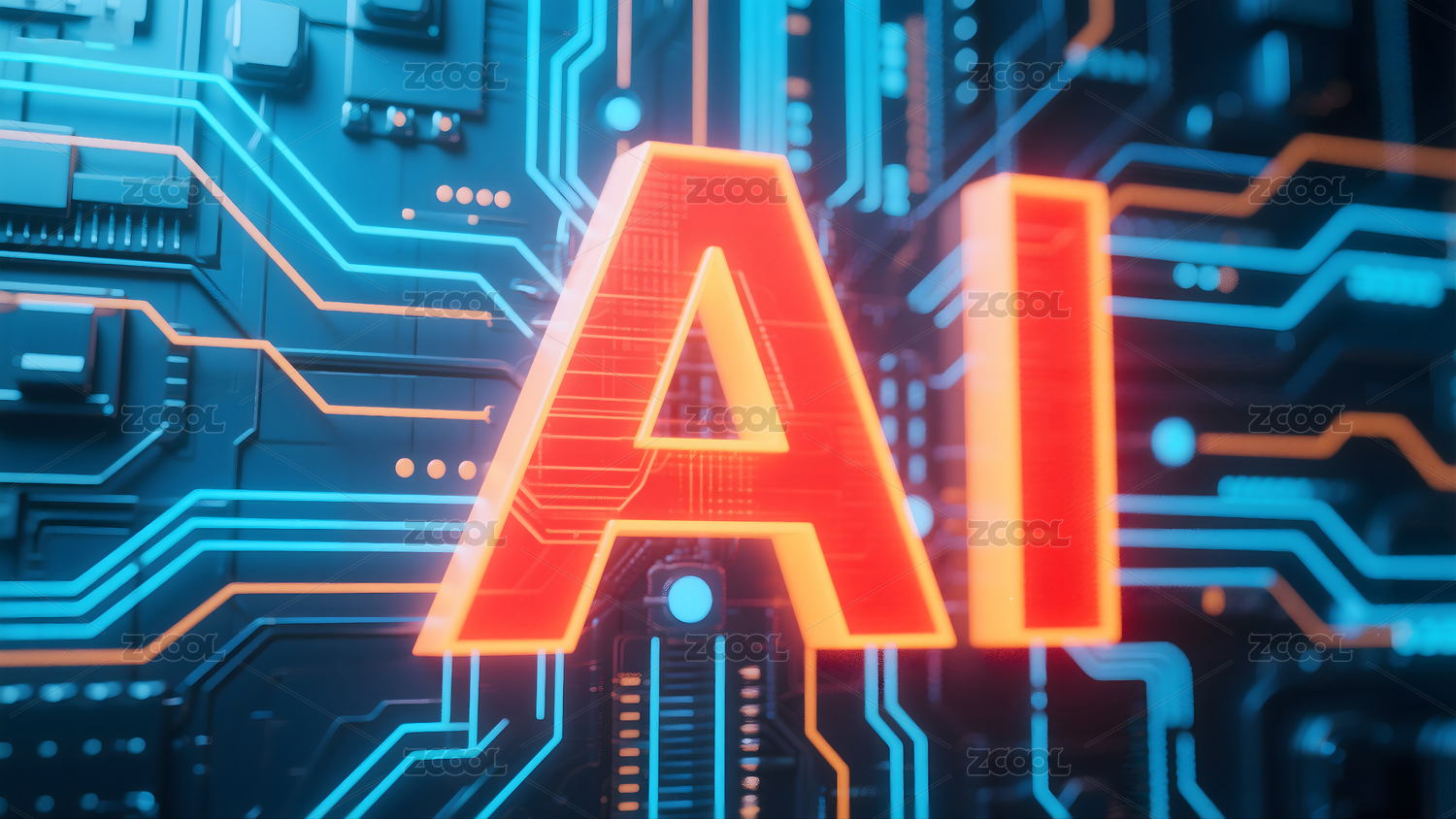 橙色,AI,蓝色,电路板,科技,未来,电子,设计,深蓝,字样