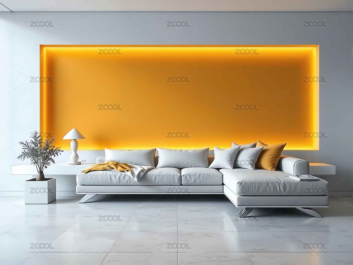 客厅,沙发,黄色,墙面,灯光,装饰,现代,简约,灰色,白色