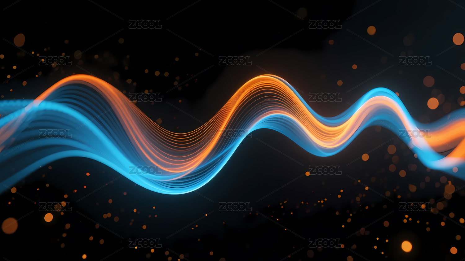 蓝色,橙色,黄色,波浪,光点,深色渐变,线条,动态,鲜艳,神秘