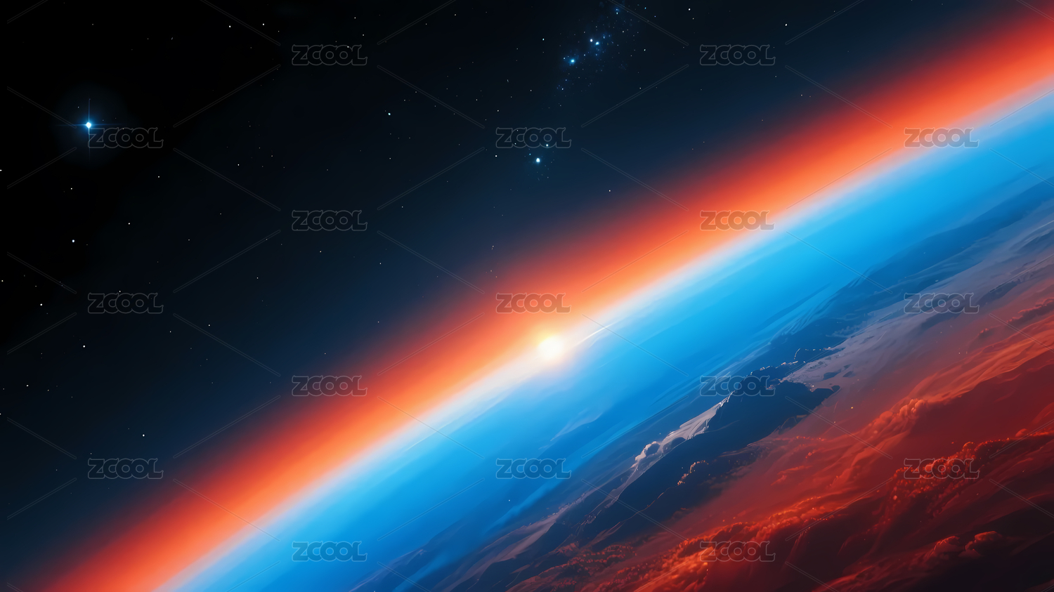 蓝色,色调,黑色,深邃,橙色,光带,明亮,星球,太空,远处