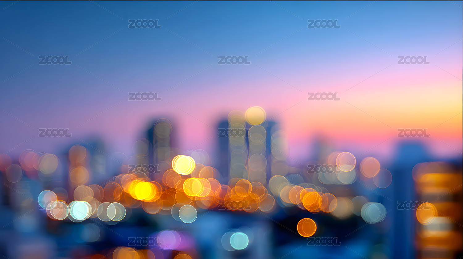 城市夜景灯光彩色梦幻光斑都市风光多色的色