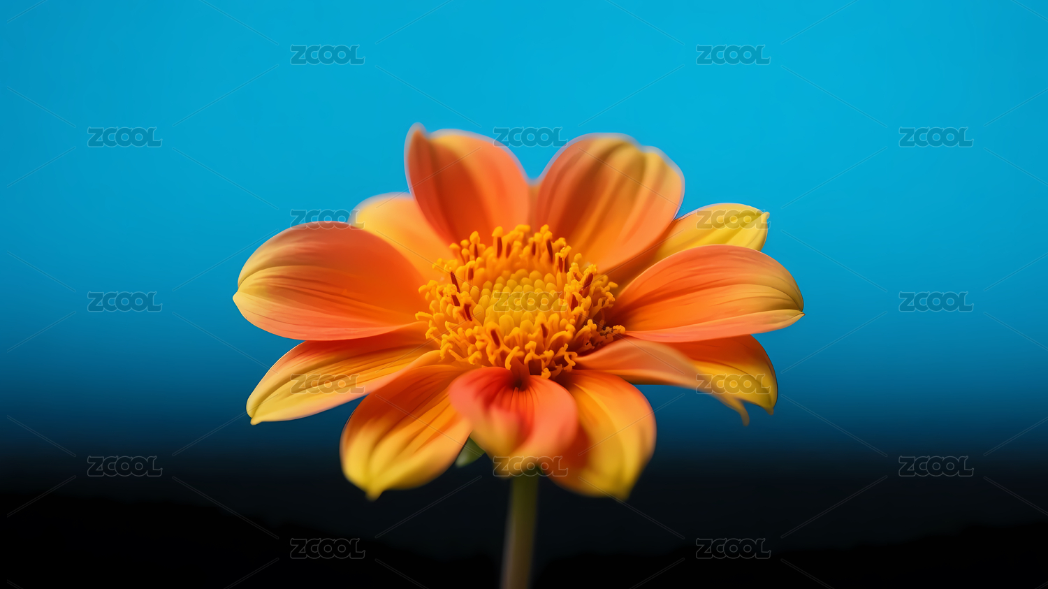 花朵,橙色,黄色,深蓝,花瓣,渐变,宁静,花蕊,美丽