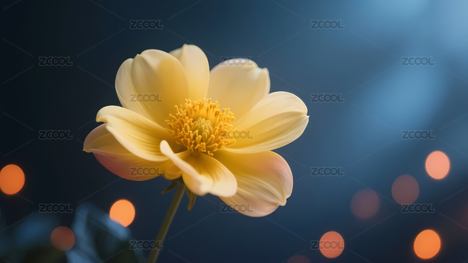 花朵,模糊,黄色,自然,细节,深蓝,白色,光斑,点缀,静谧