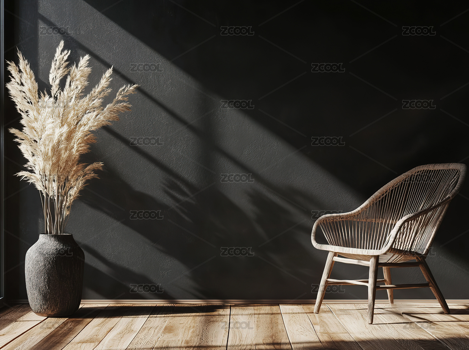 阳光,椅子,靠垫,花瓶,干花,墙壁,地板,阴影,自然光,室内设计