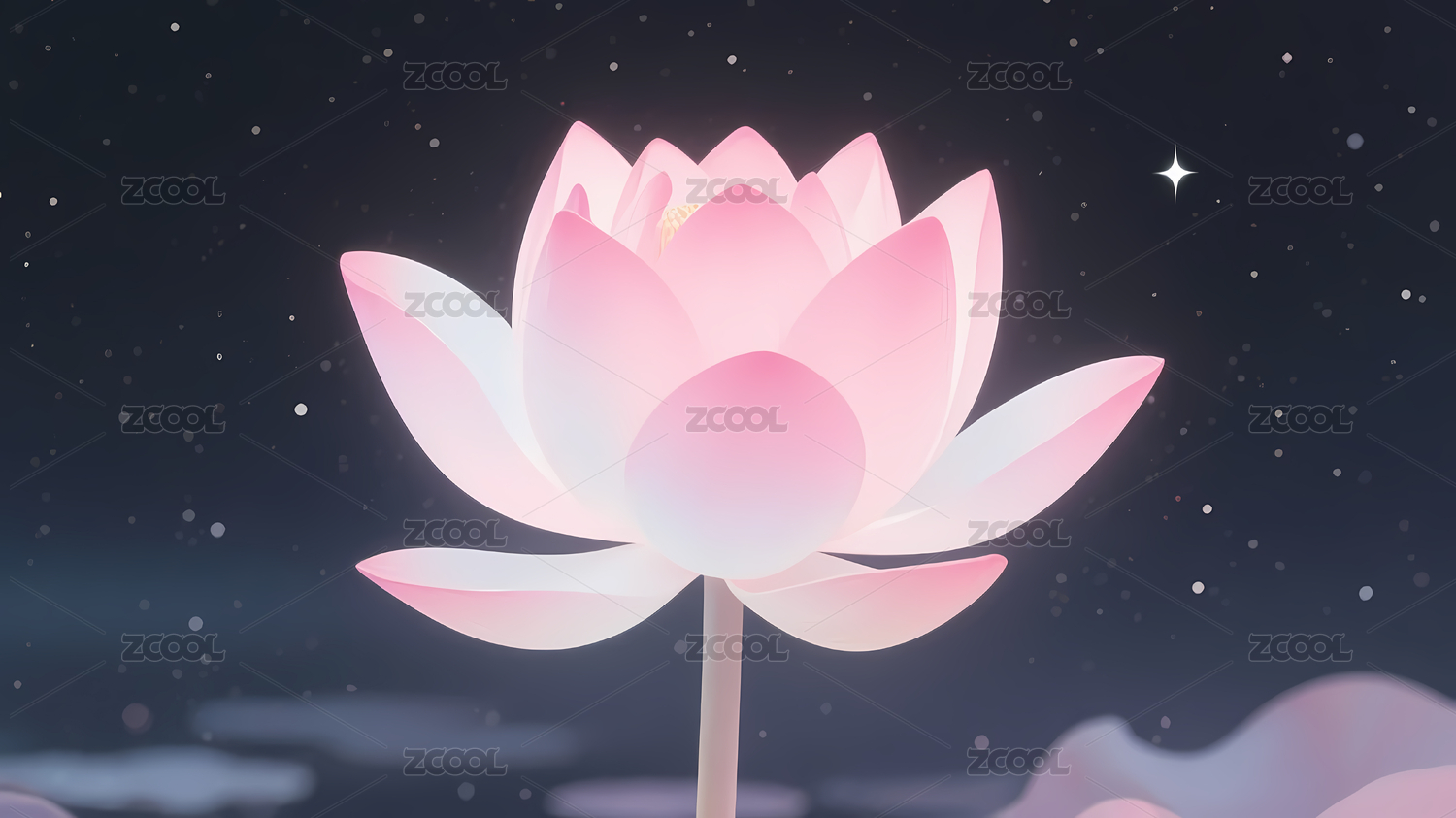 自然,粉色,深蓝,层叠,花瓣,莲花,星星,光芒,夜空,点点