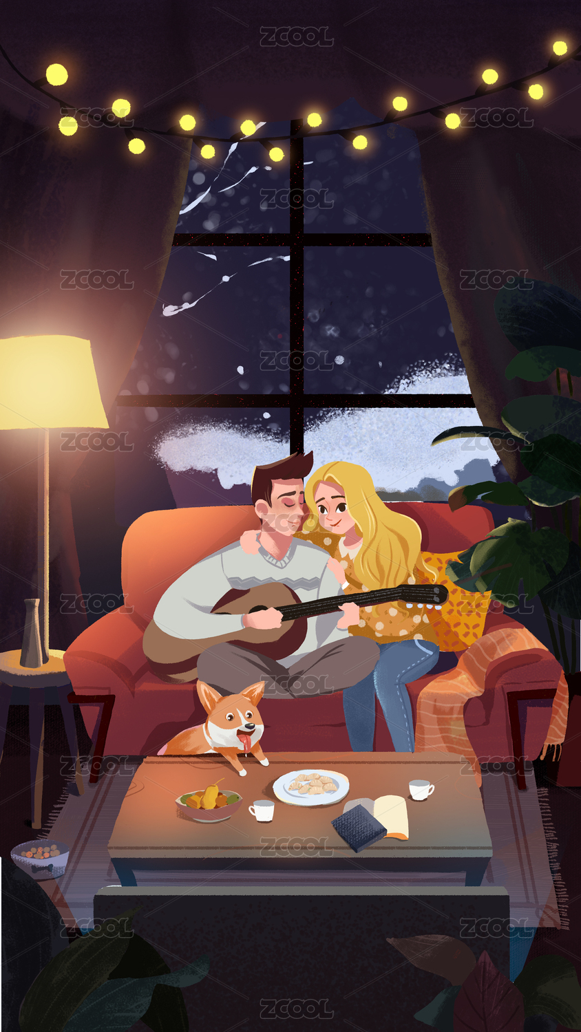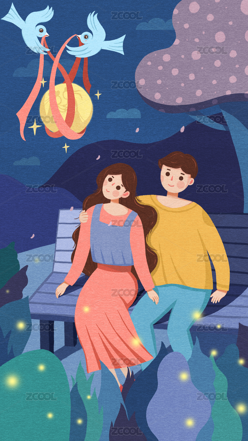 情侣插画海报封面书籍插图