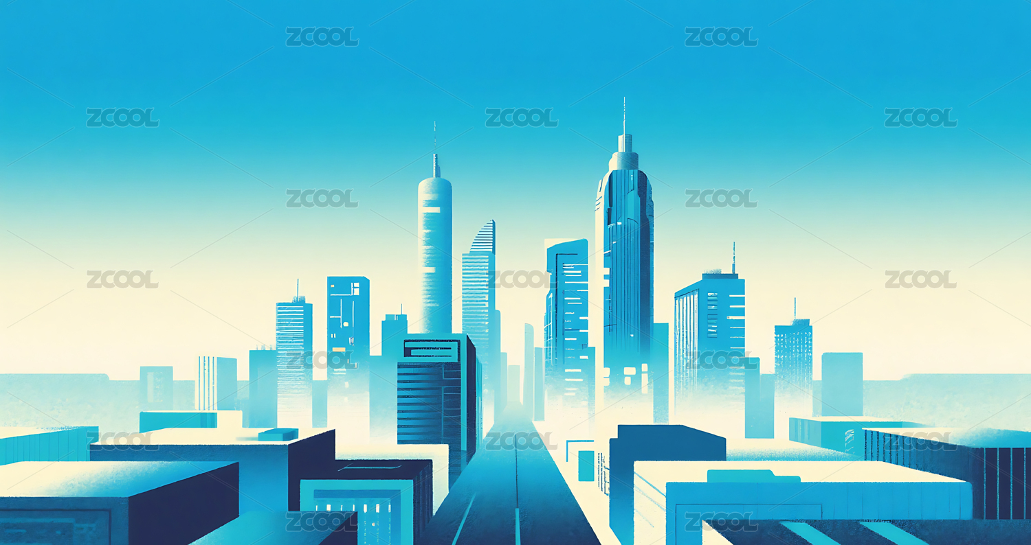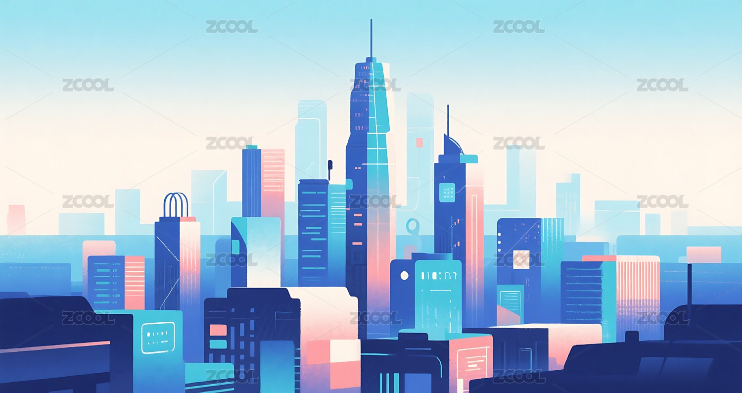 抽象极简科技感城市建筑插画