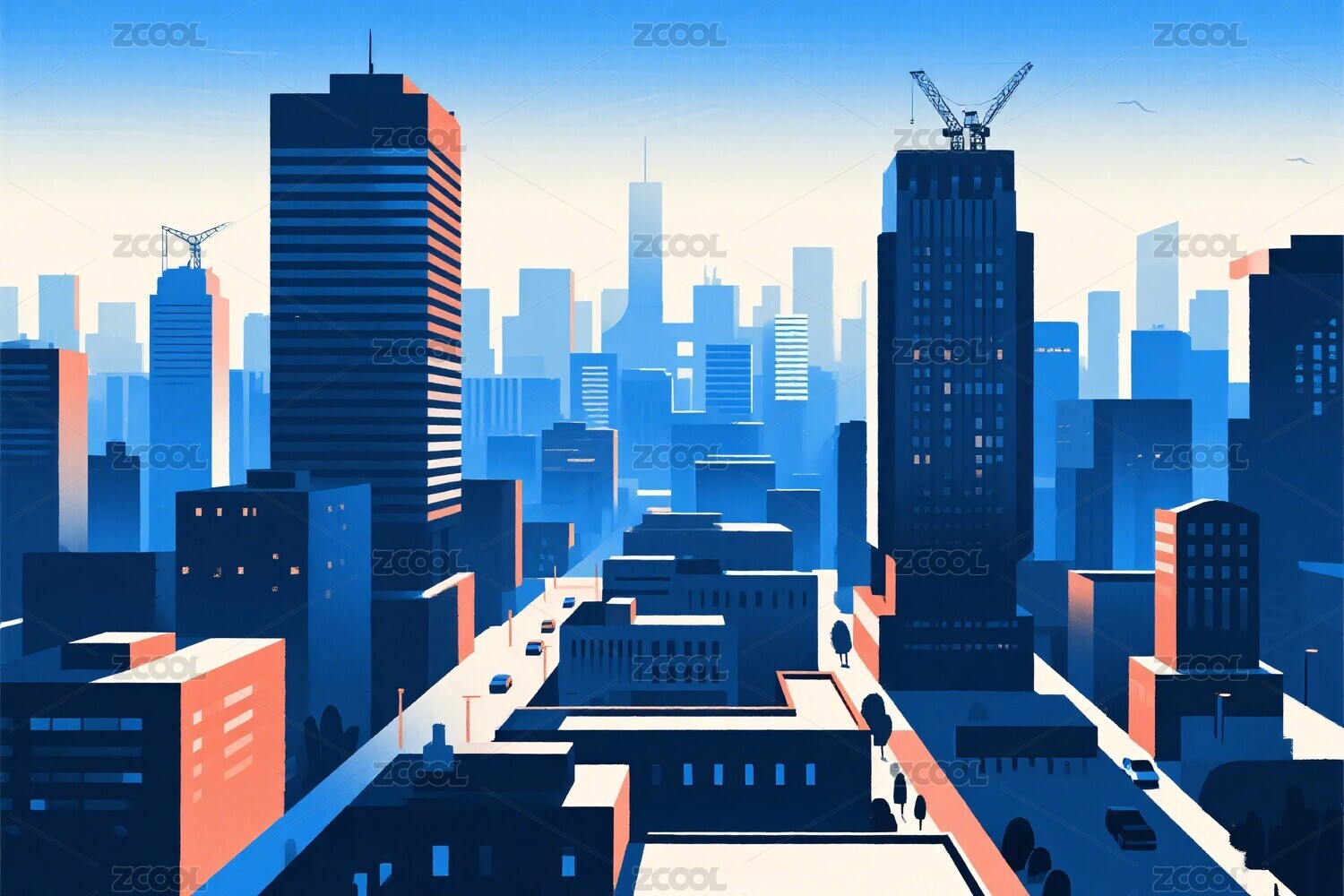 城市插画中的街道与高楼