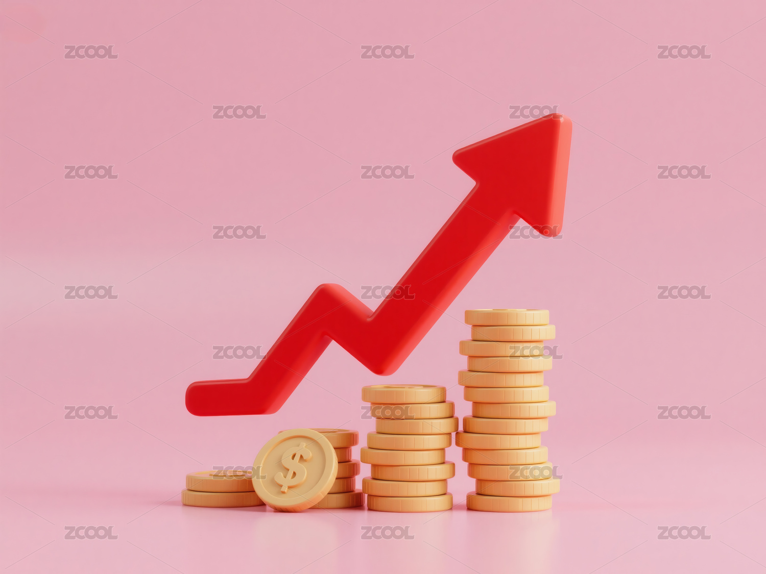 红色上升箭头与金币