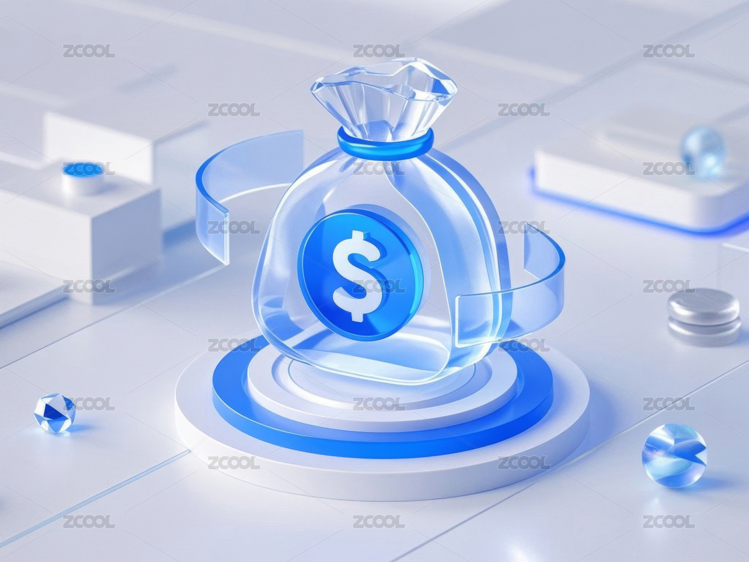 商务金融风透明玻璃感图标背景