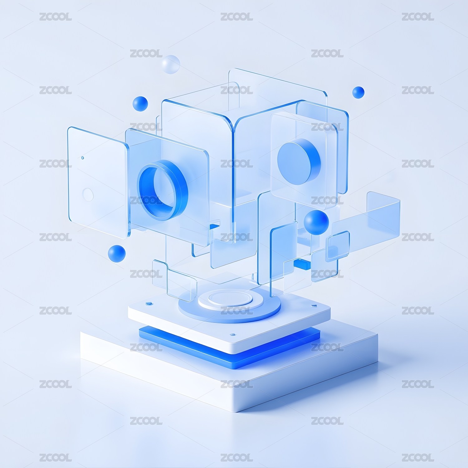 科技,3D,立体,白色,纯净,浅色,蓝色,图标,简约,现代