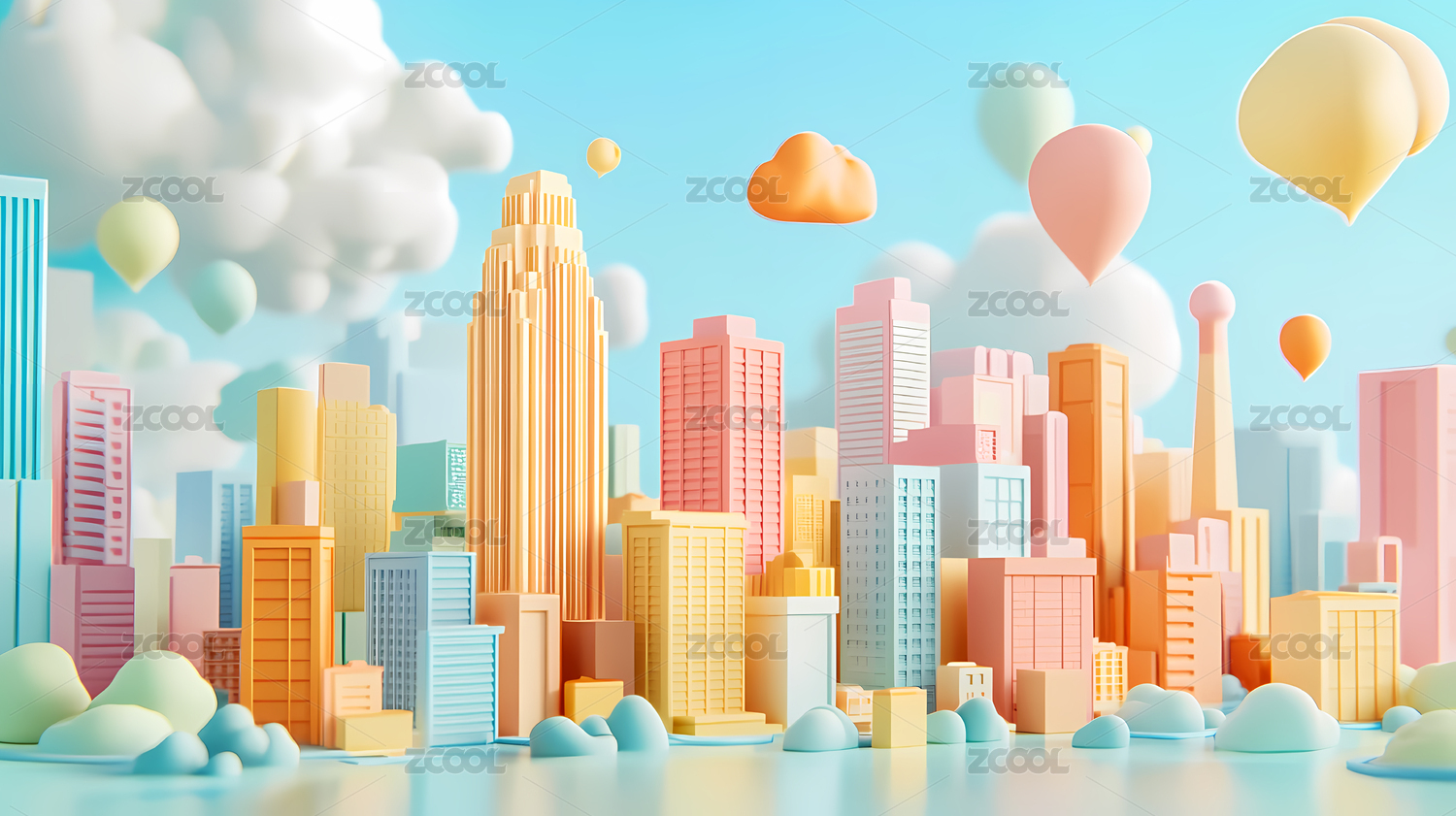 飞艇,城市,复古,天空,云朵,旅行,运输,3D,卡通,立体