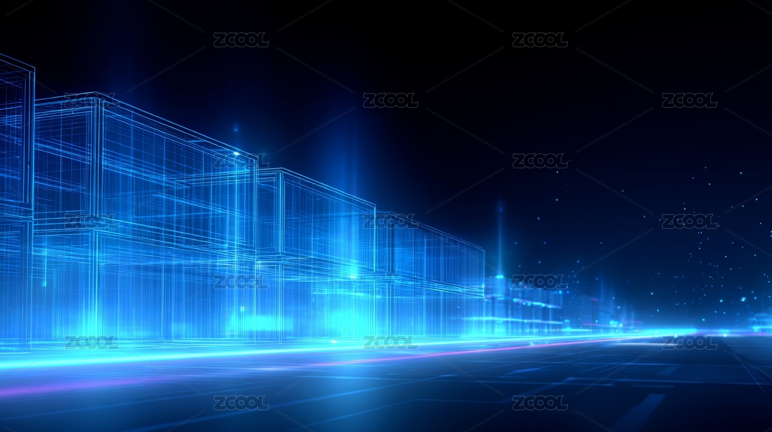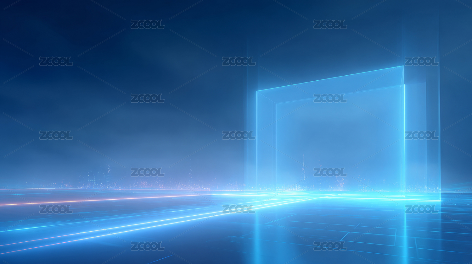 科技,建筑,蓝色,光影,线条,未来感,虚拟,透明,现代,设计