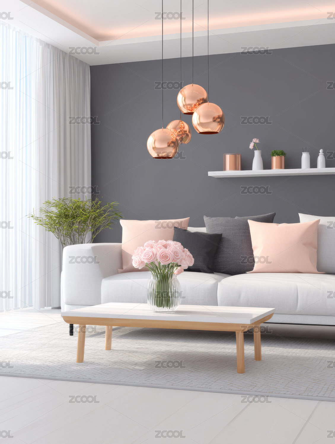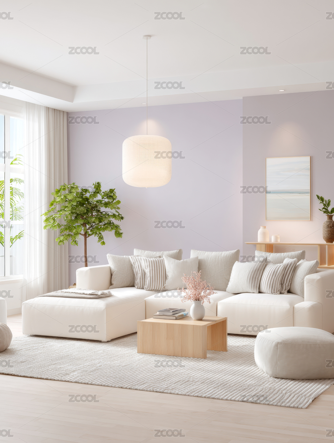 客厅,沙发,吊灯,窗户,花瓶,地毯,茶几,装饰,现代,简约