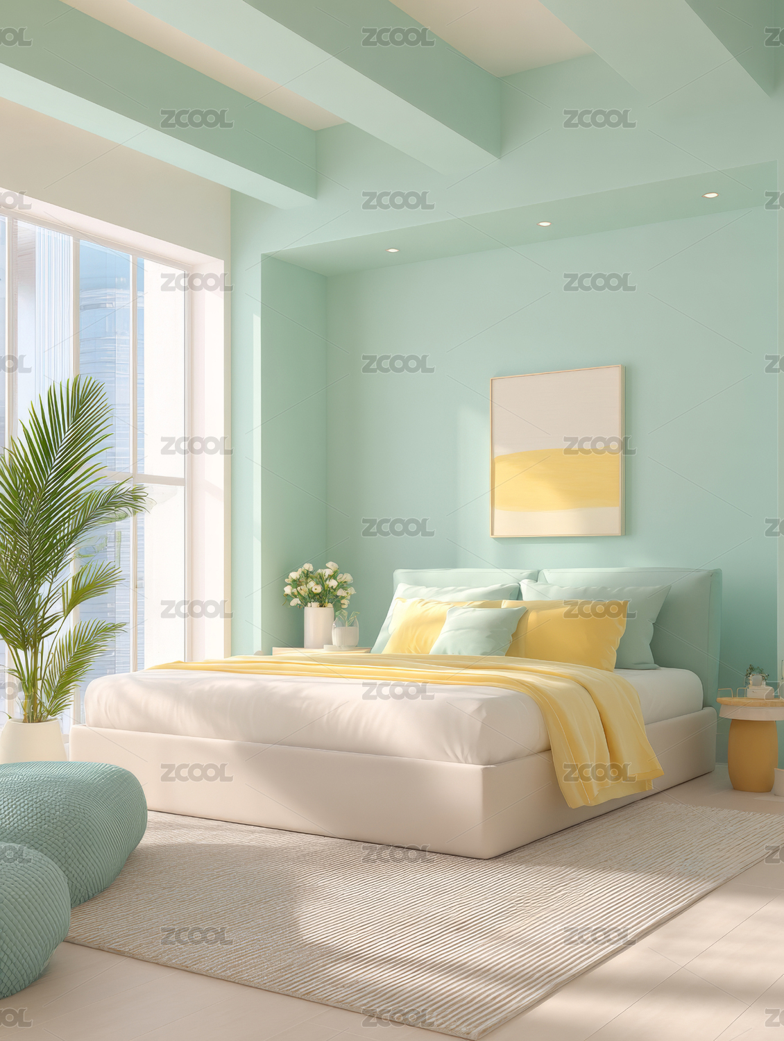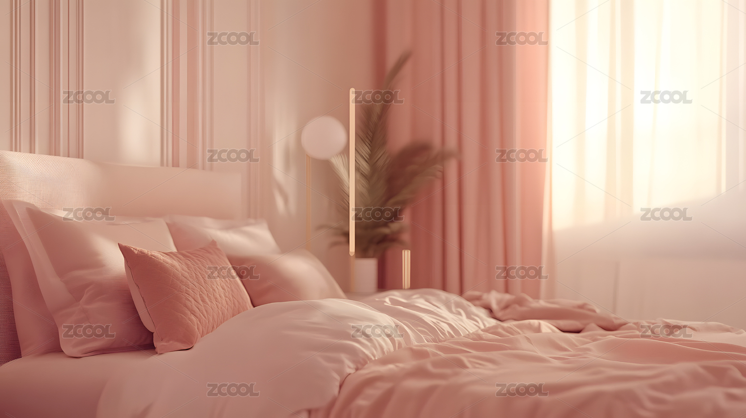卧室,床,窗帘,植物,枕头,被子,柔和,色调,装饰品,自然光